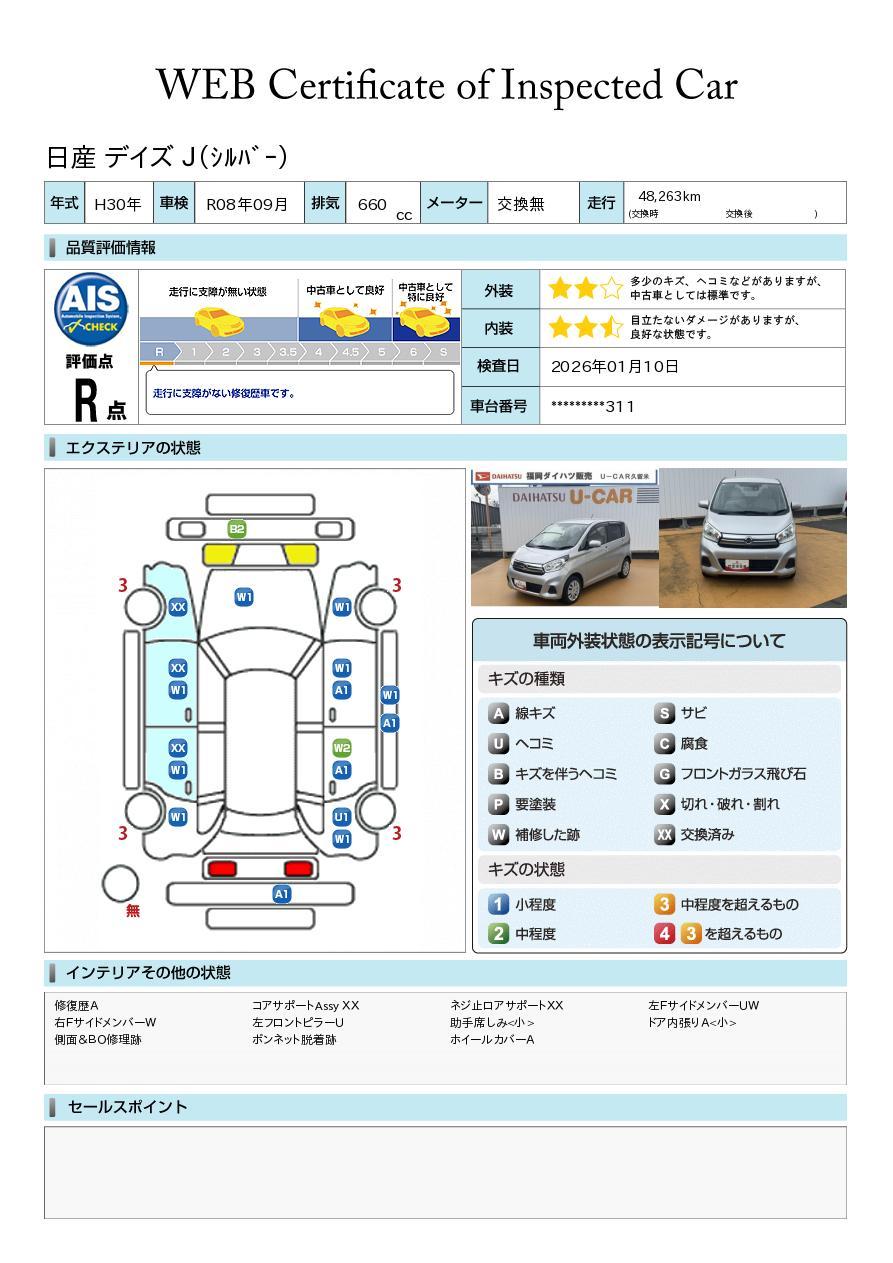 株式会社AISの車両状態証明書となります。