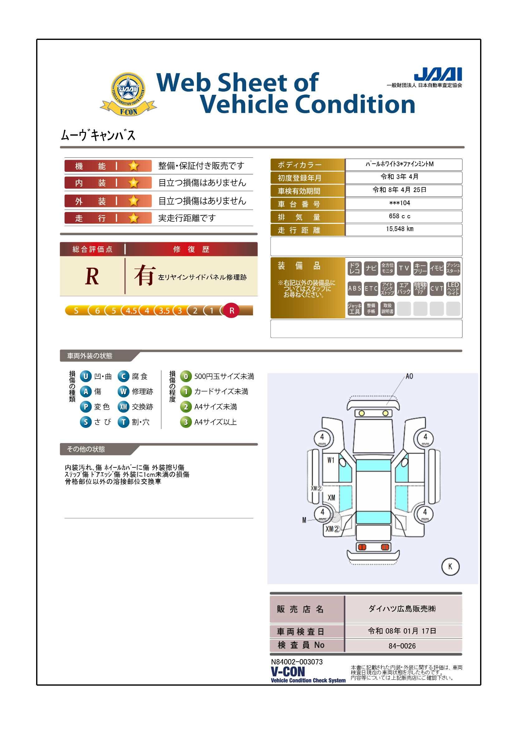 評価点及び上記コメントは、評価日時での車両状態を示したものです。