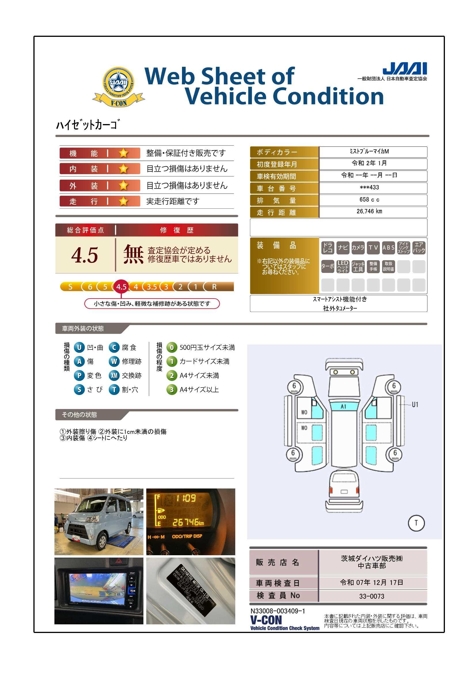 | 定期点検整備コメント | 定期点検整備:付、定期点検整備料金:車両価格に含む | ||