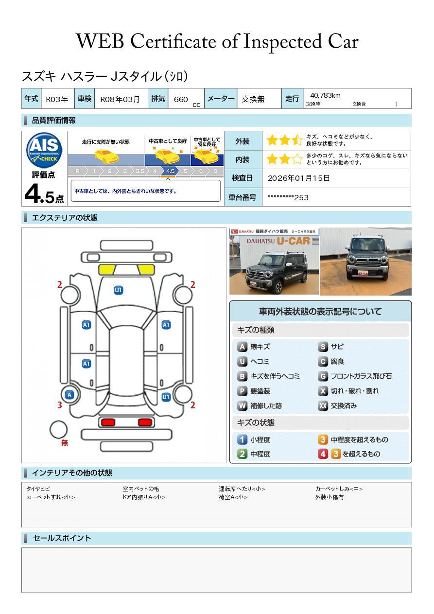 車両状態証明書が付いておりますので、安心してお選び出来ます。詳しくは、スタッフまでお気軽にお問合せください。