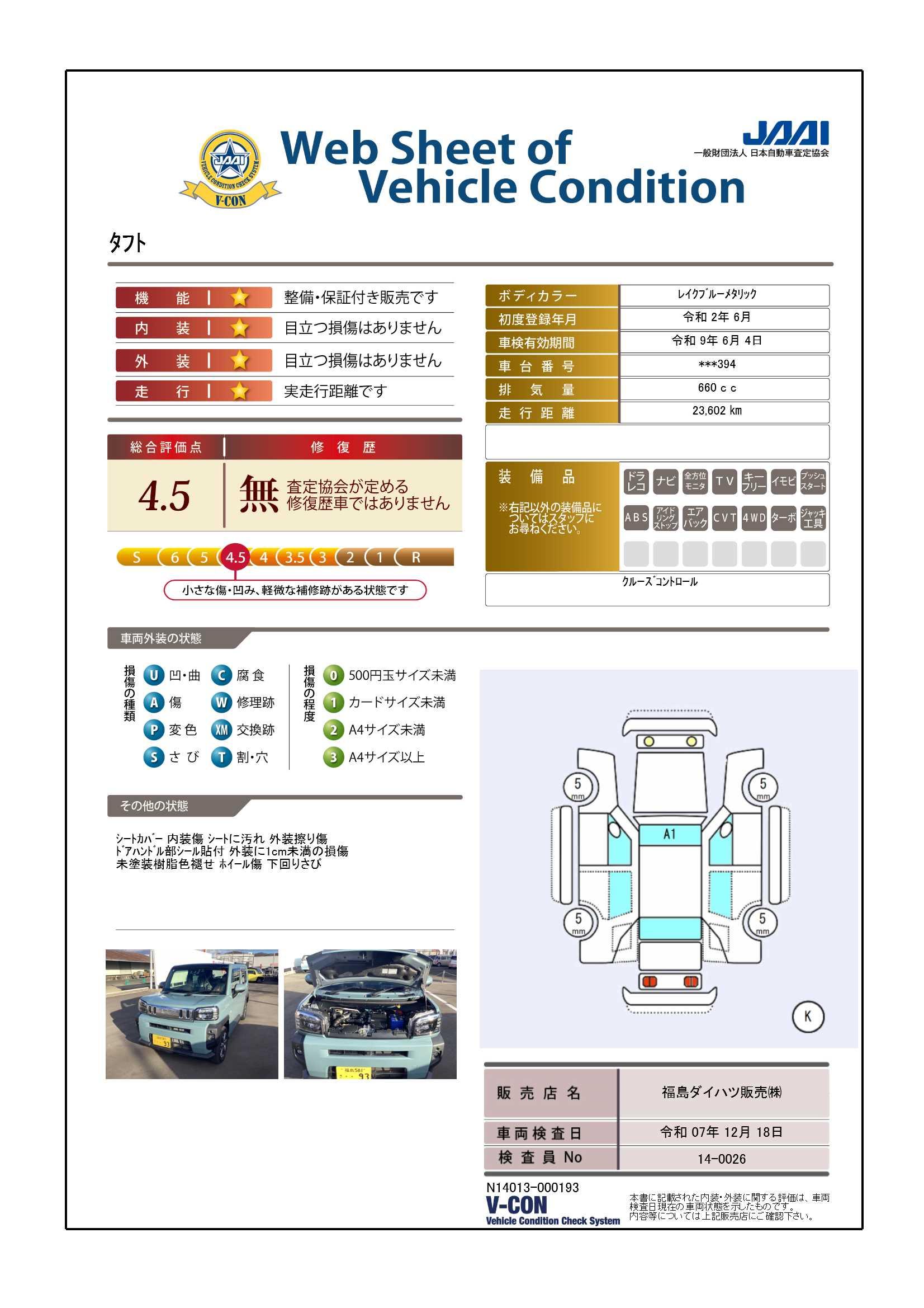 new タフトGターボ 4WD ドラレコ付車(福島県)の中古車情報