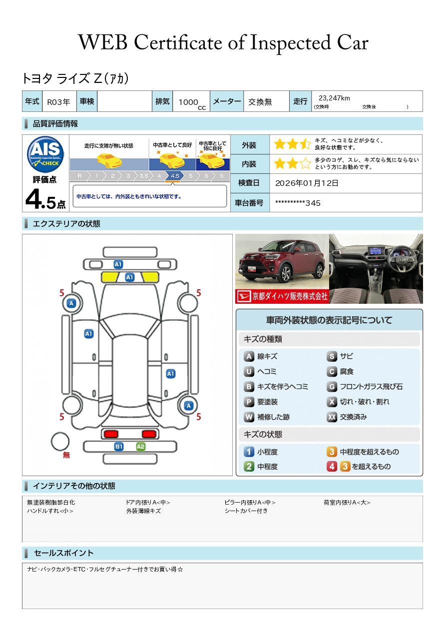 up ライズZ ナビ バックカメラ フルセグチューナー ブルートゥース(京都府)の中古車情報