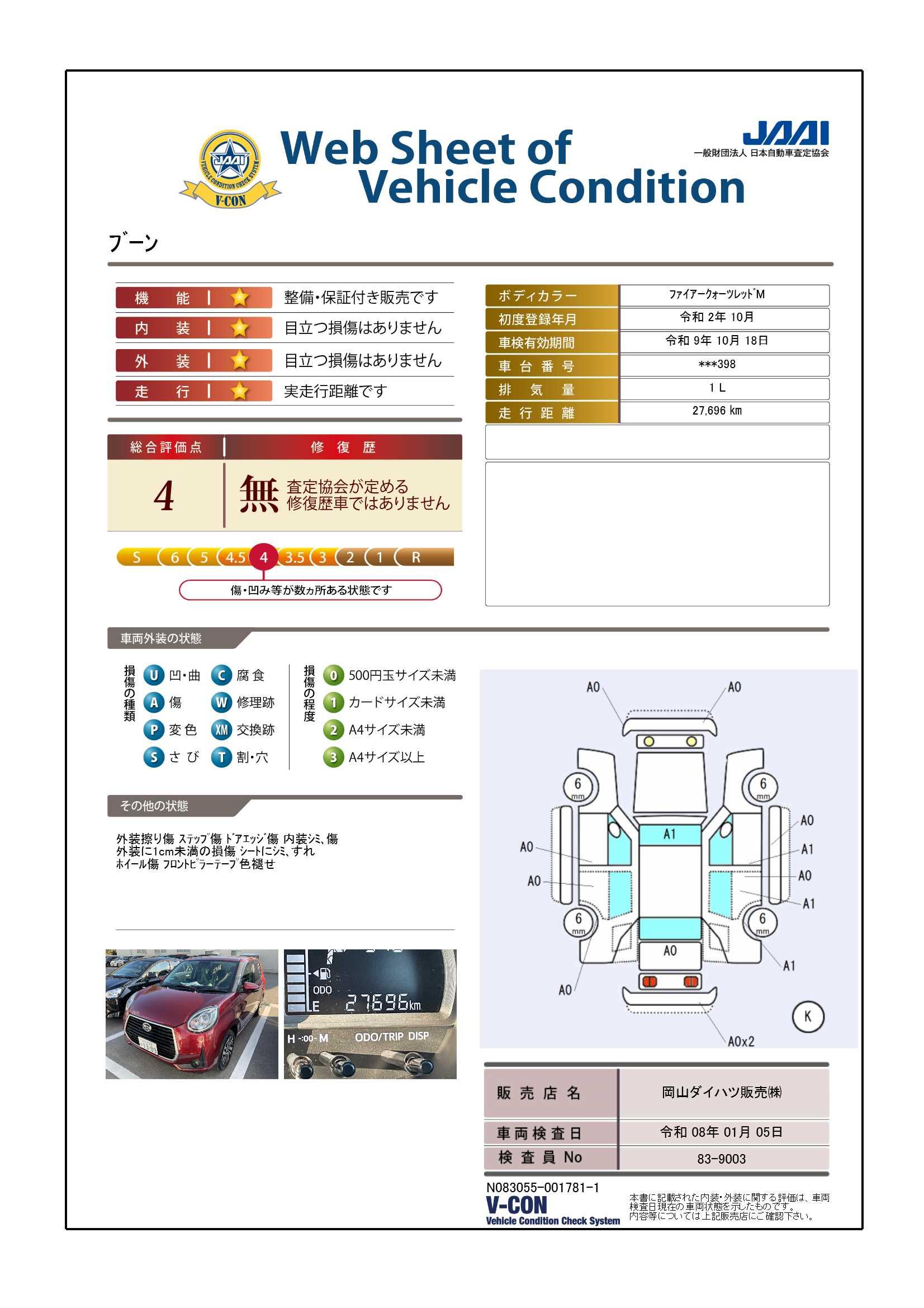 弊社では転売目的の方への販売はお断りしております。ご理解とご了承の程、宜しくお願い申し上げます。車をご覧になりたい時はお気軽に最寄りの店舗へご相談下さい。岡山ダイハツ直営店間の運搬費用は頂きません。