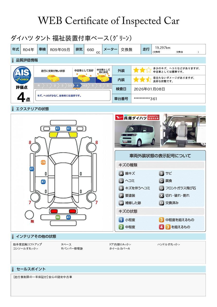 ダイハツ認定中古車なら展示車両の状態を開示しております。展示車両に自信があるからこそ出来るサービスです。