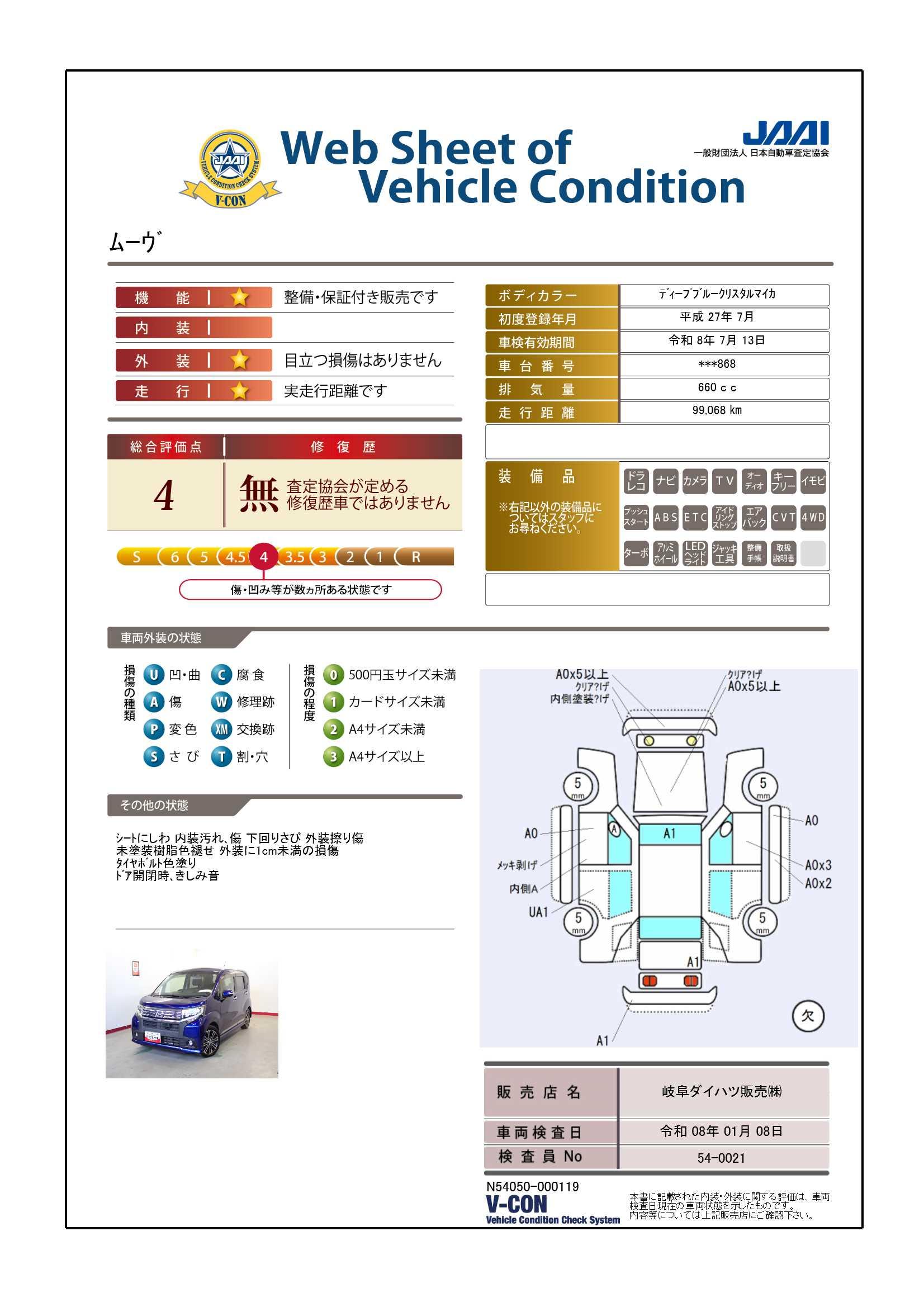 車両状態証明書が付いておりますので、安心してお選び出来ます。詳しくは、スタッフまでお気軽にお問合せください。