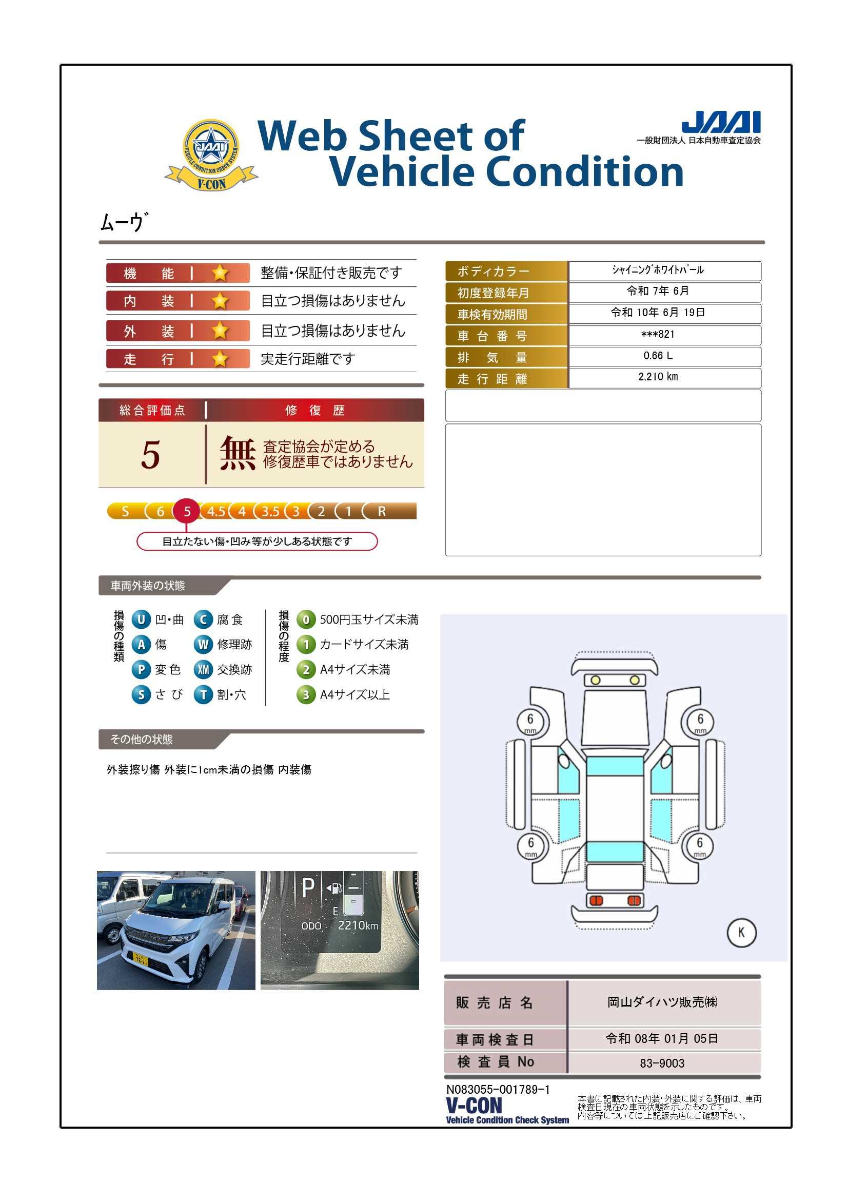 現状の車両の状態に関しましては必ず販売店に確認をお願いします。(2008年10月からの評価基準改定により、一部の車両につき店頭の評価表記と違う場合がございます。詳しくは販売店にお問い合わせください。