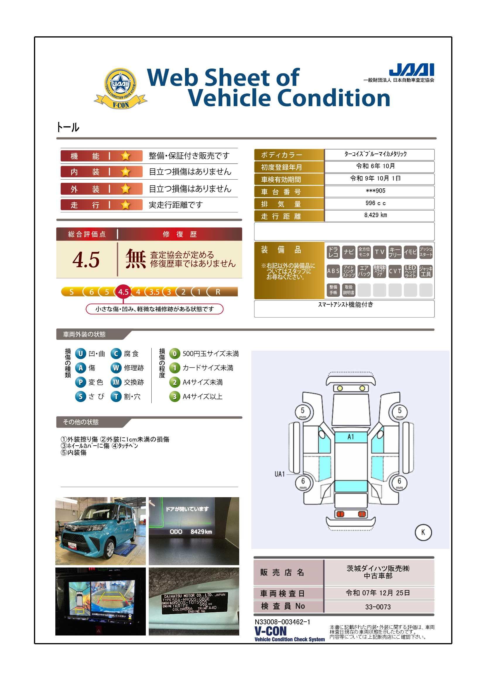| 定期点検整備コメント | 定期点検整備:付、定期点検整備料金:車両価格に含む | ||