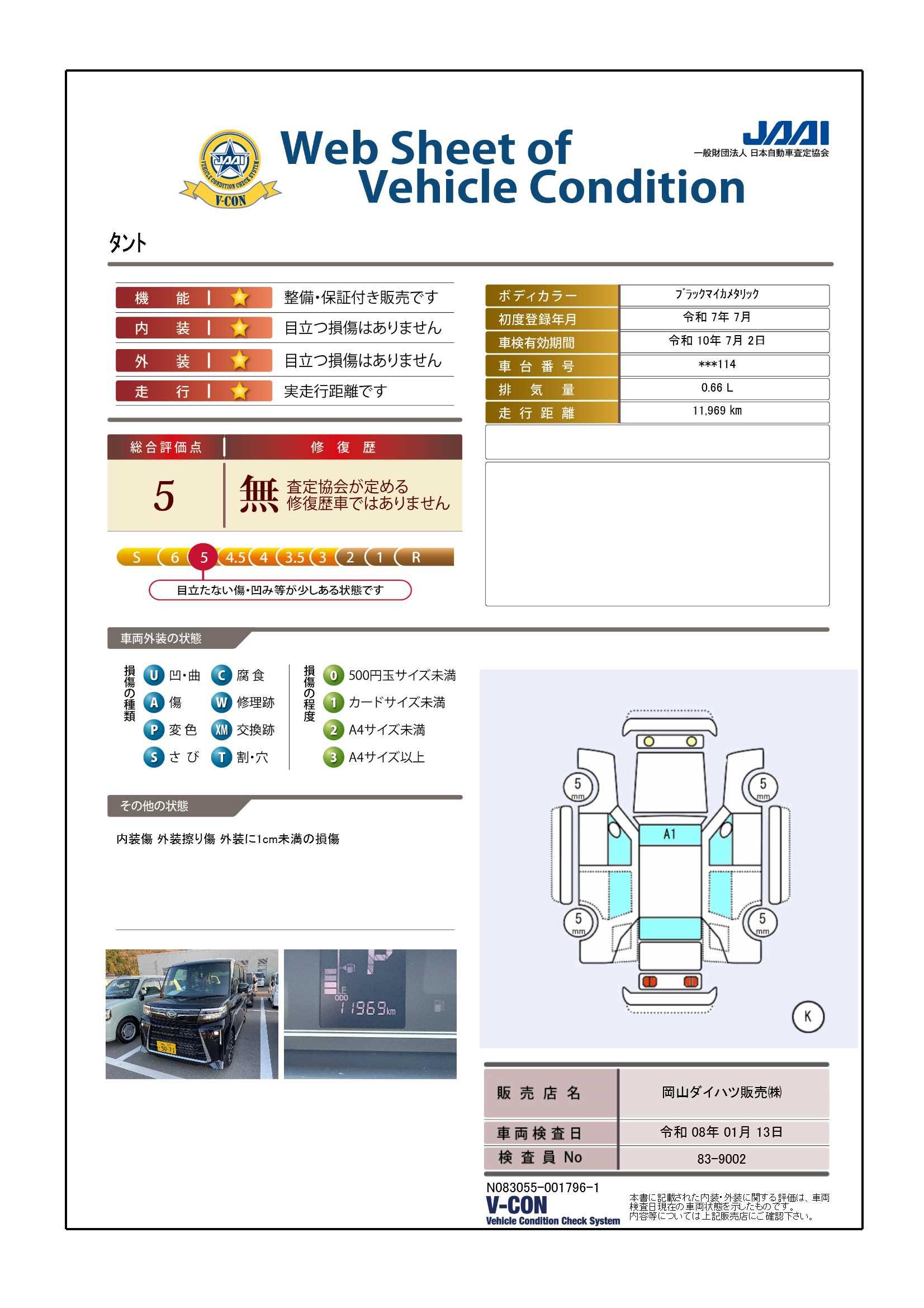 現状の車両の状態に関しましては必ず販売店に確認をお願いします。(2008年10月からの評価基準改定により、一部の車両につき店頭の評価表記と違う場合がございます。詳しくは販売店にお問い合わせください。