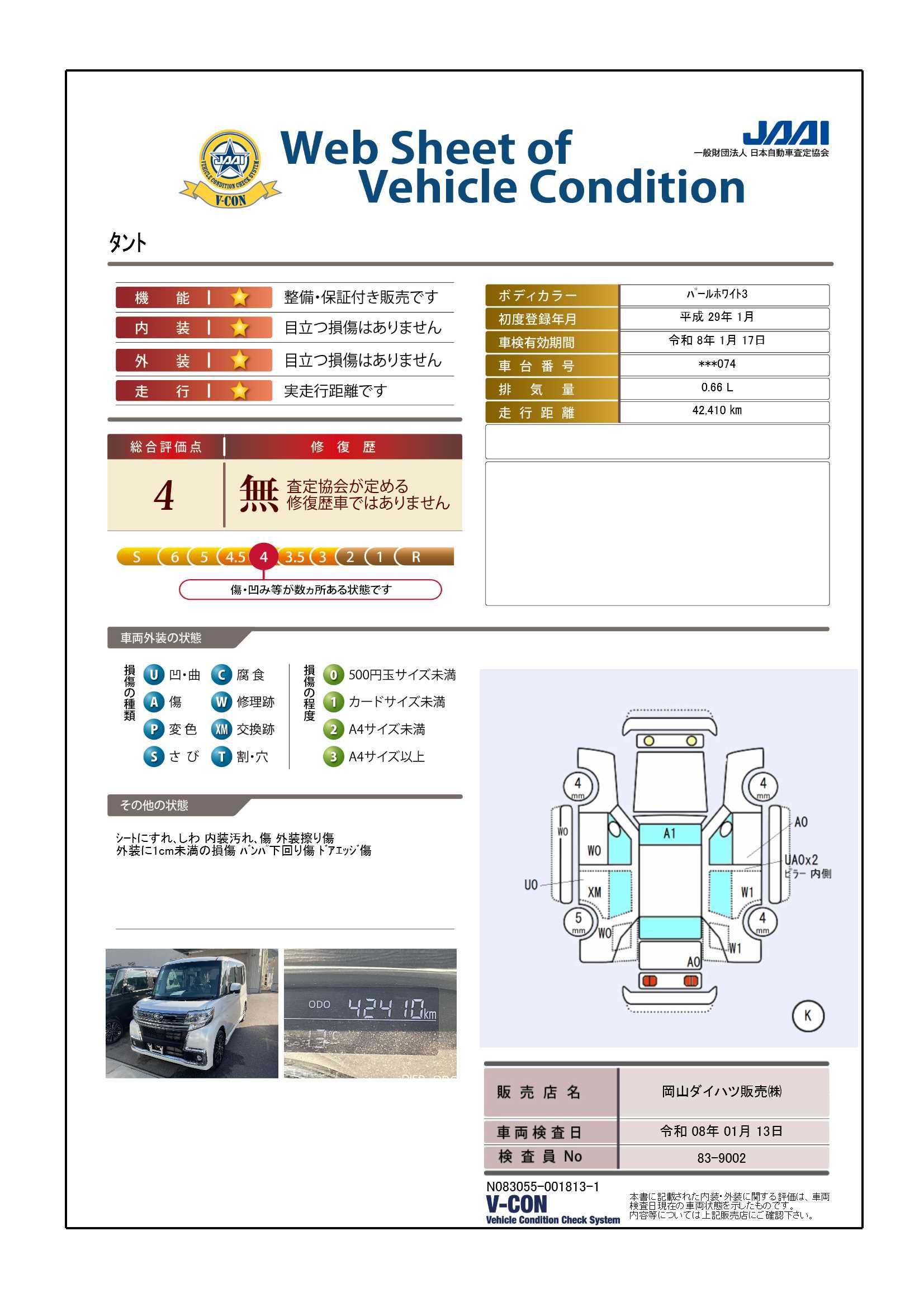 ダイハツ認定中古車は、「車両状態証明書」「約60項目の徹底点検・整備」「内装の徹底清掃と洗浄」「1年間無償保証(車両本体価格30万円以下の車両は3ヶ月または3000kmの保証)」が全車に付いています。