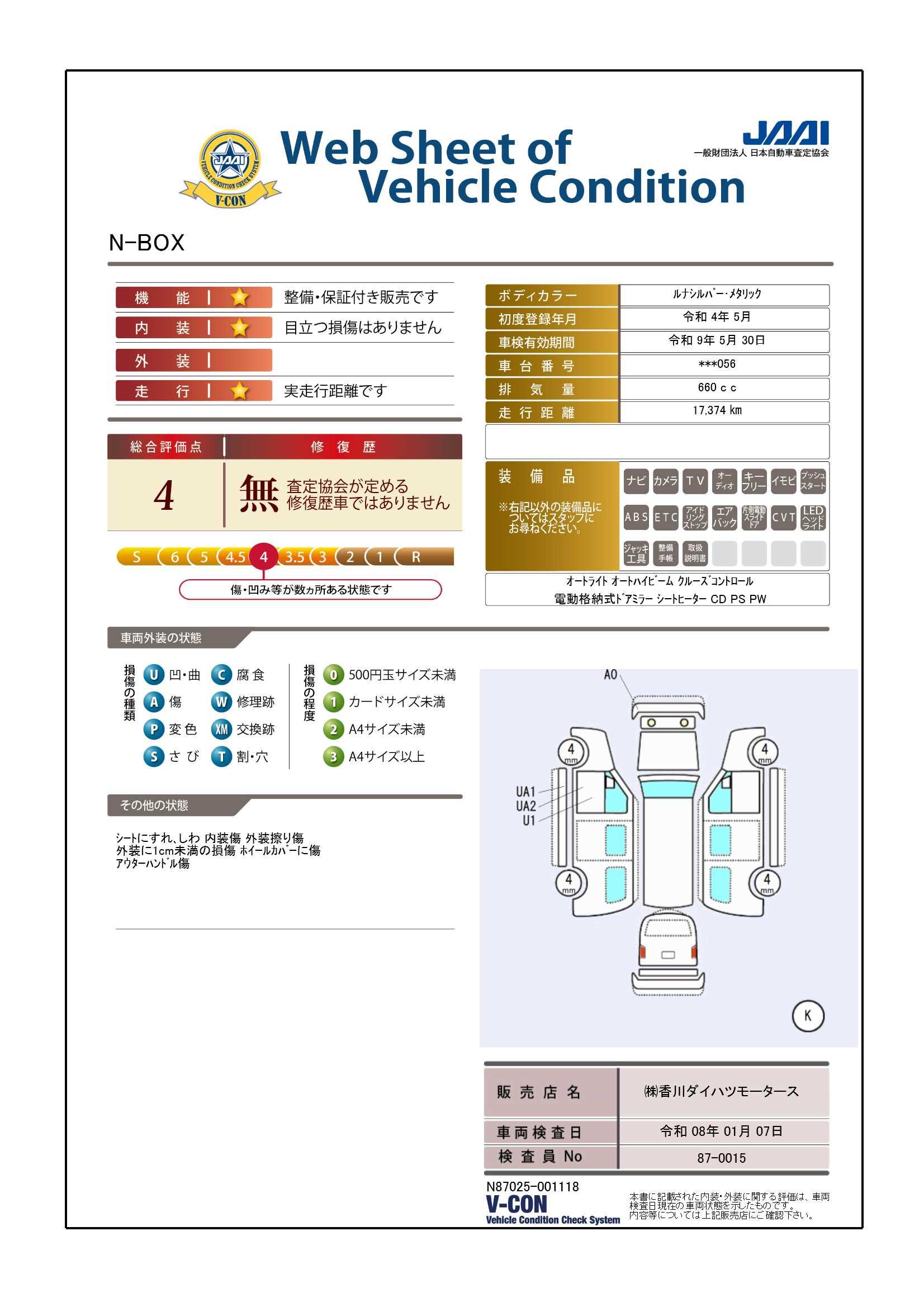 一般財団法人 日本自動車査定協会の車両状態証明書となります。