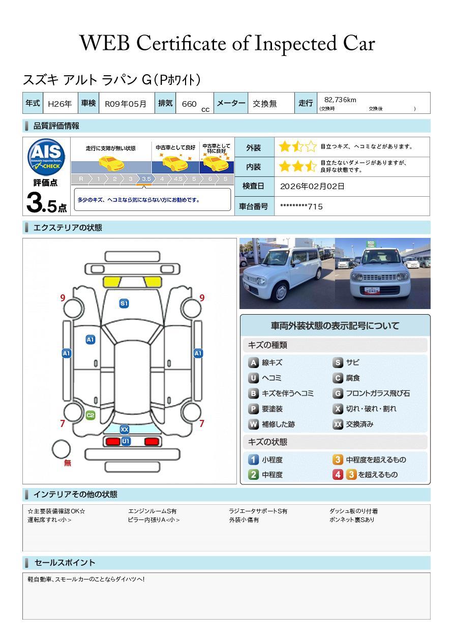 車両状態証明書付き