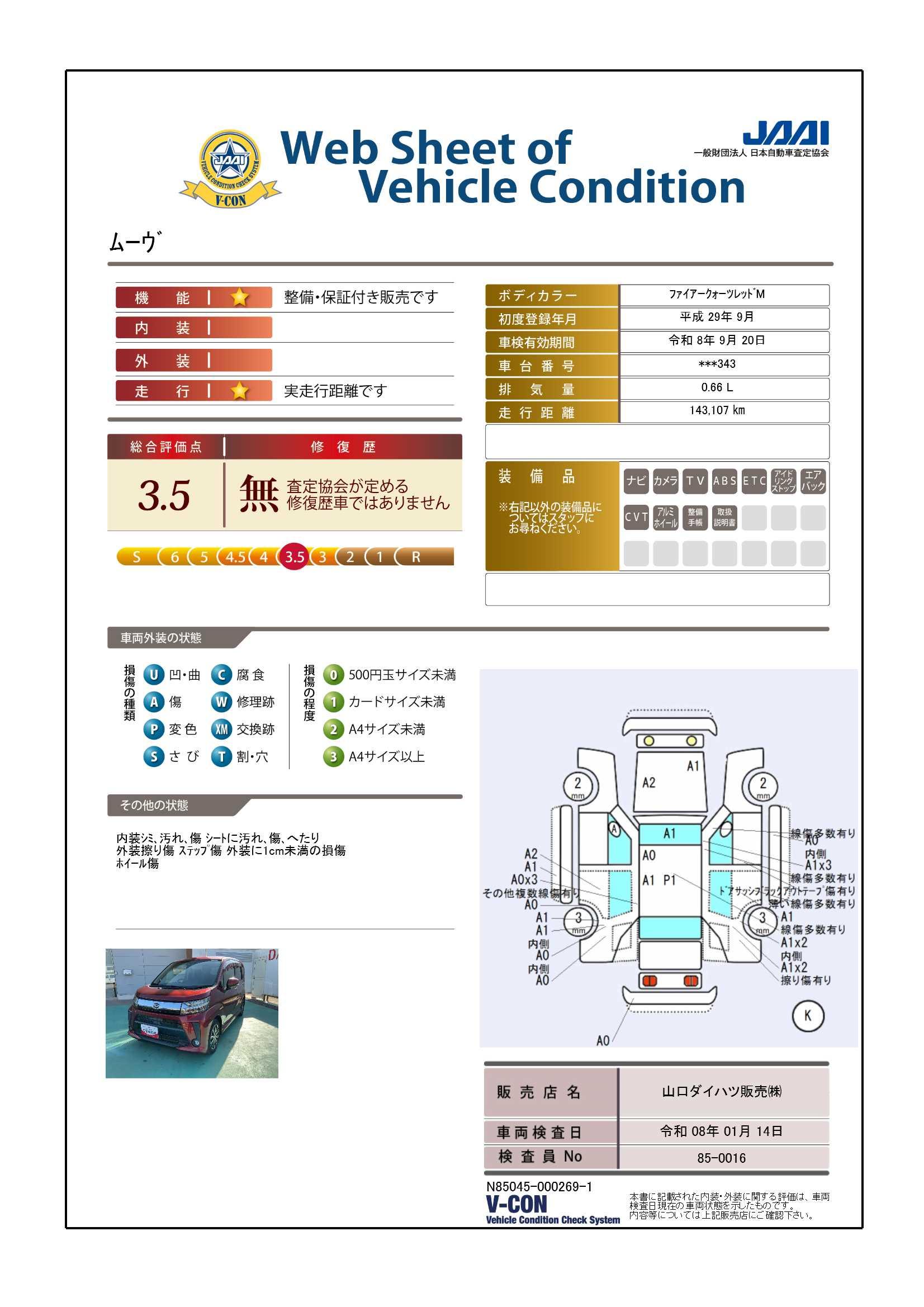 | 定期点検整備コメント | 定期点検整備:付、定期点検整備料金:車両価格に含む | ||