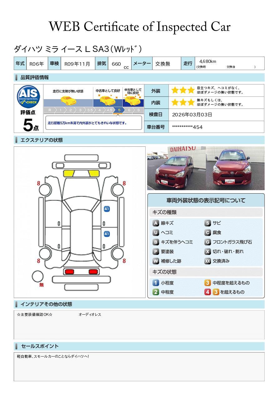 車両状態証明書が付いておりますので、安心してお選び出来ます。詳しくは、スタッフまでお気軽にお問合せください。