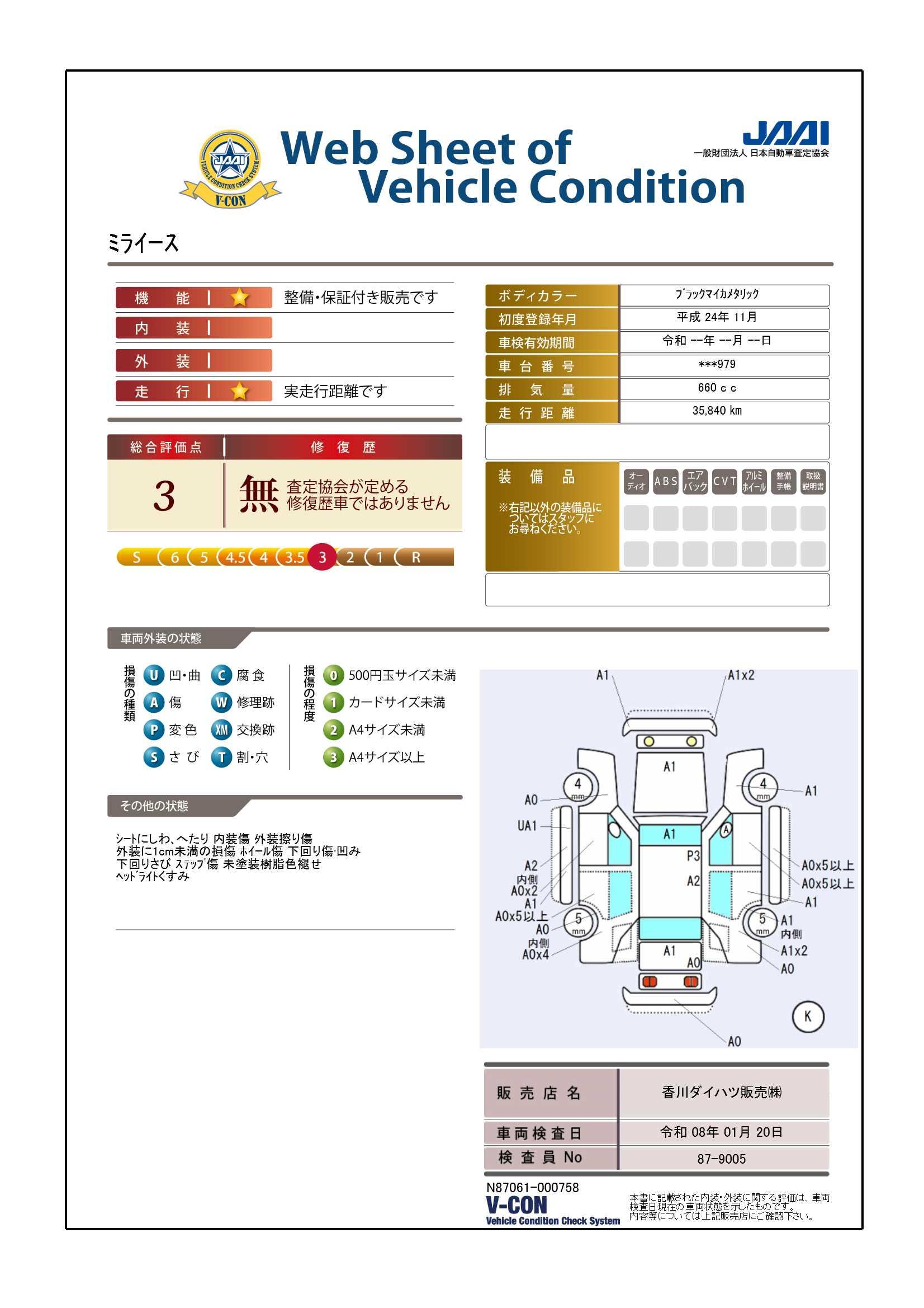 一般財団法人 日本自動車査定協会の車両状態証明書となります。