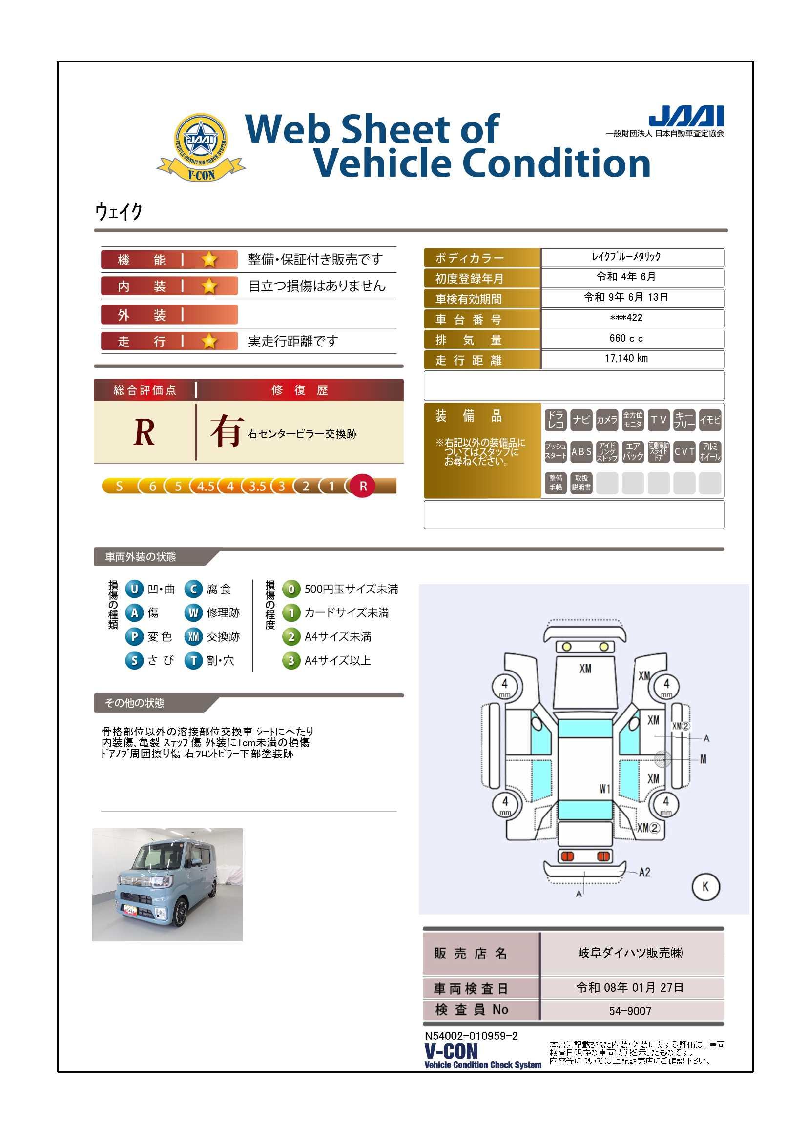 現状の車両の状態に関しましては必ず販売店に確認をお願いします。(2008年10月からの評価基準改定により、一部の車両につき店頭の評価表記と違う場合がございます。詳しくは販売店にお問い合わせください。