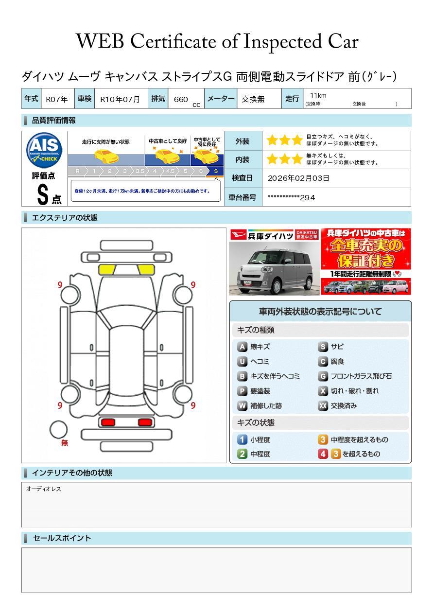 車両状態証明書が付いておりますので、安心してお選びいただけます。