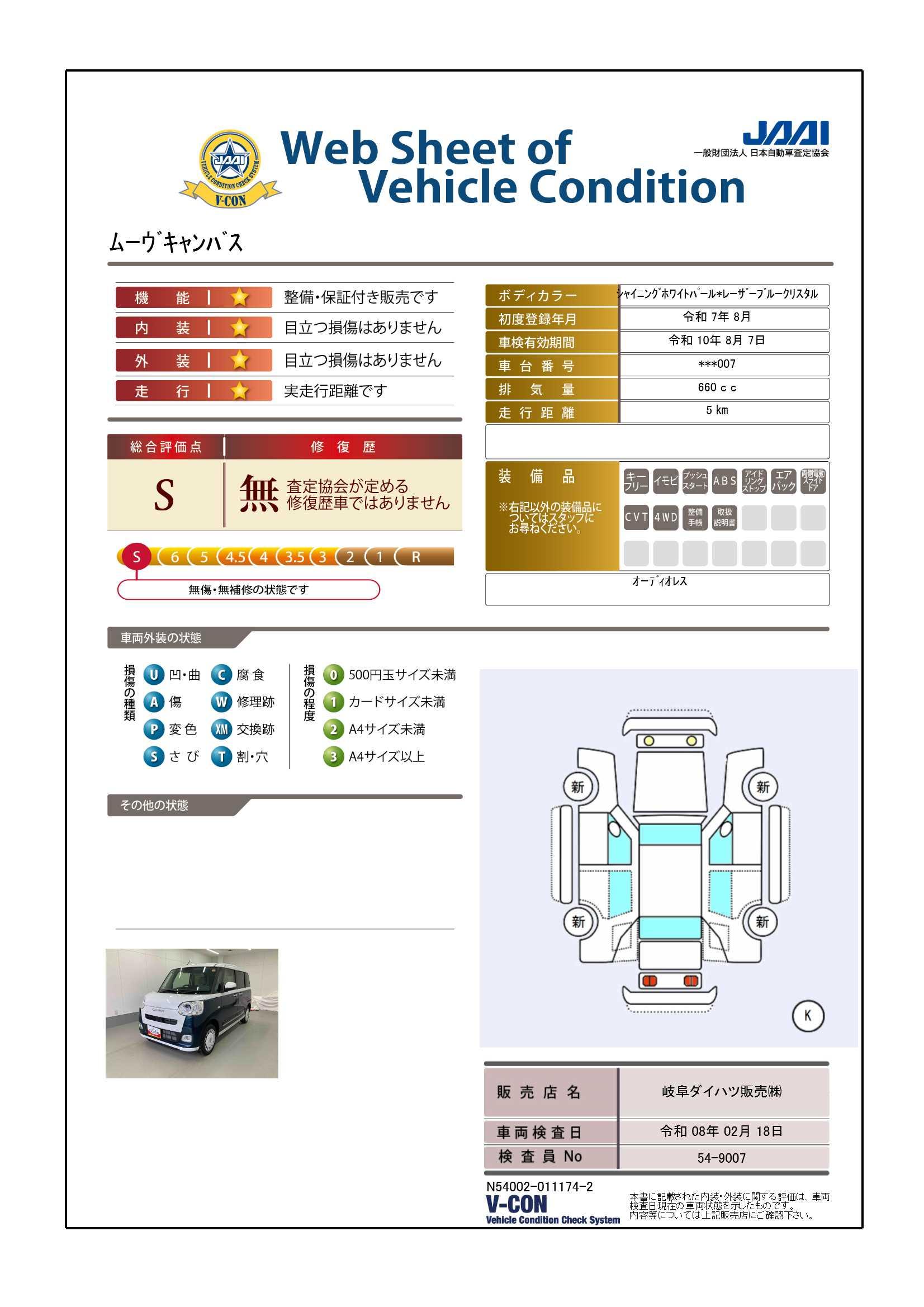 ダイハツ認定中古車なら展示車両の状態を開示しております。展示車両に自信があるからこそ出来るサービスです。