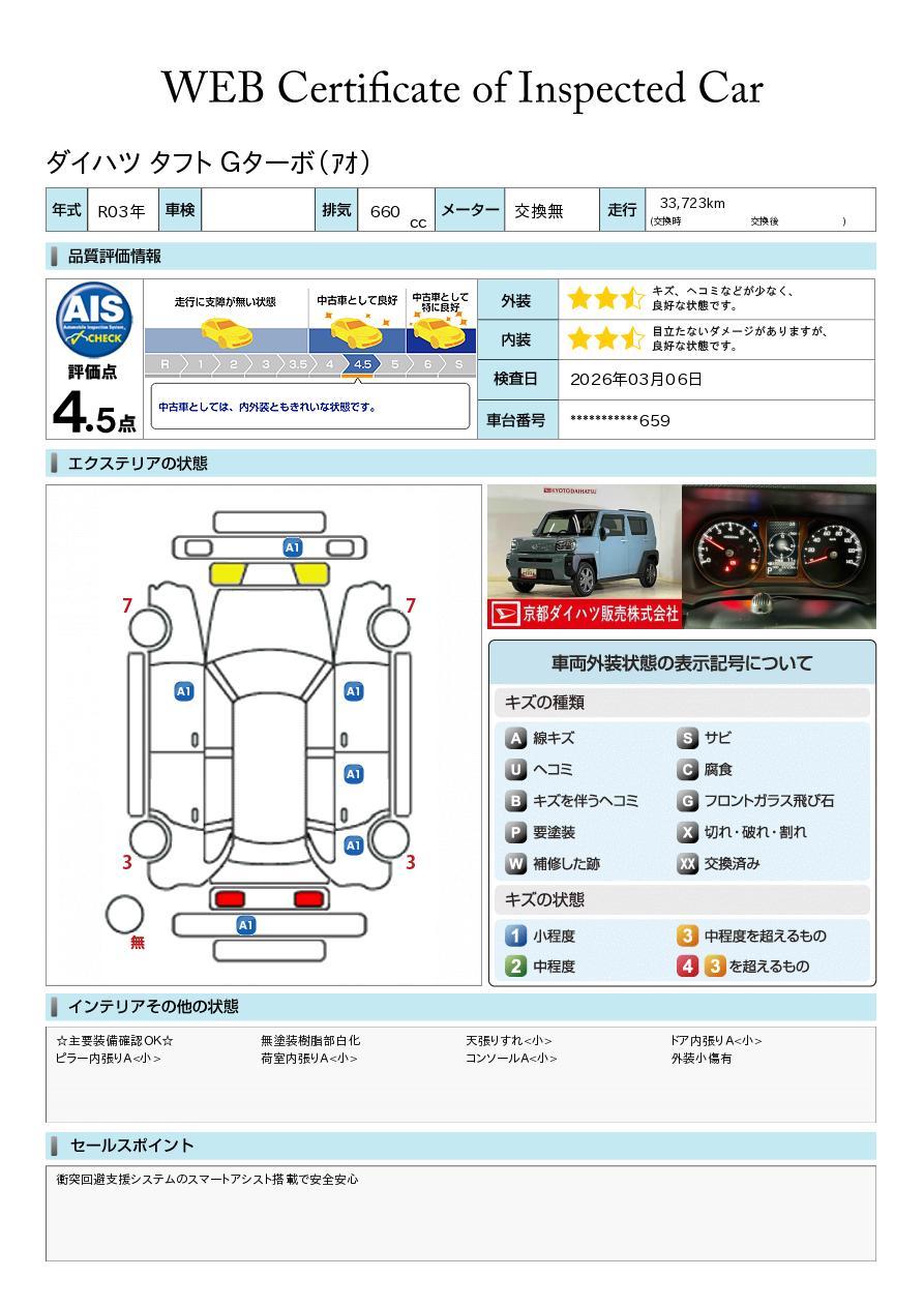 タフトGターボ 純正ナビ ETC 前後ドライブレコーダー純正7インチメモリーナビ ETC 前後ドライブレコーダー バックカメラ オートエアコン 電動パーキングブレーキ 全車速追従式クルーズコントロール オートライト オートハイビーム シートヒーター(京都府)の中古車