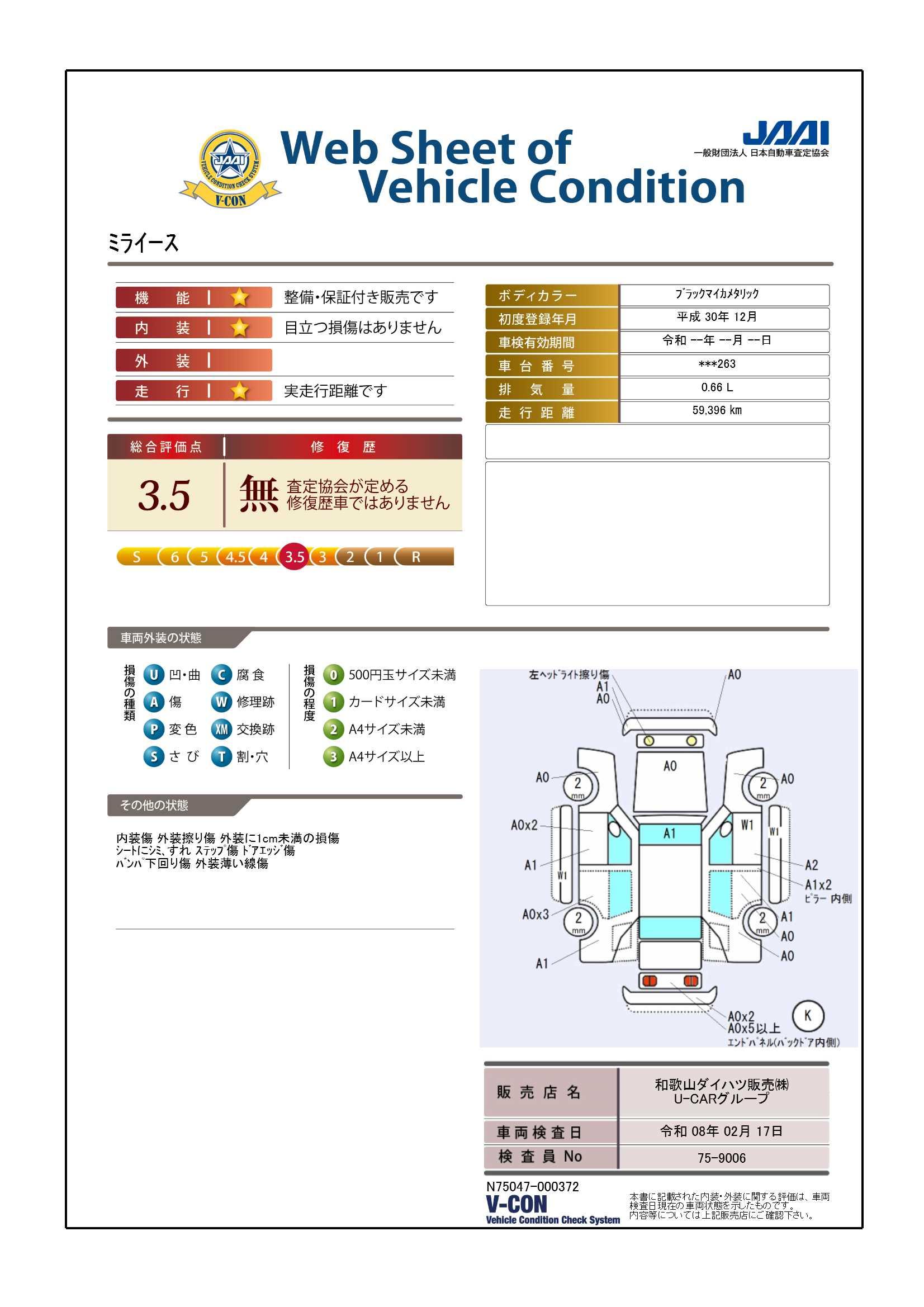 一般財団法人 日本自動車査定協会の車両状態証明書となります。