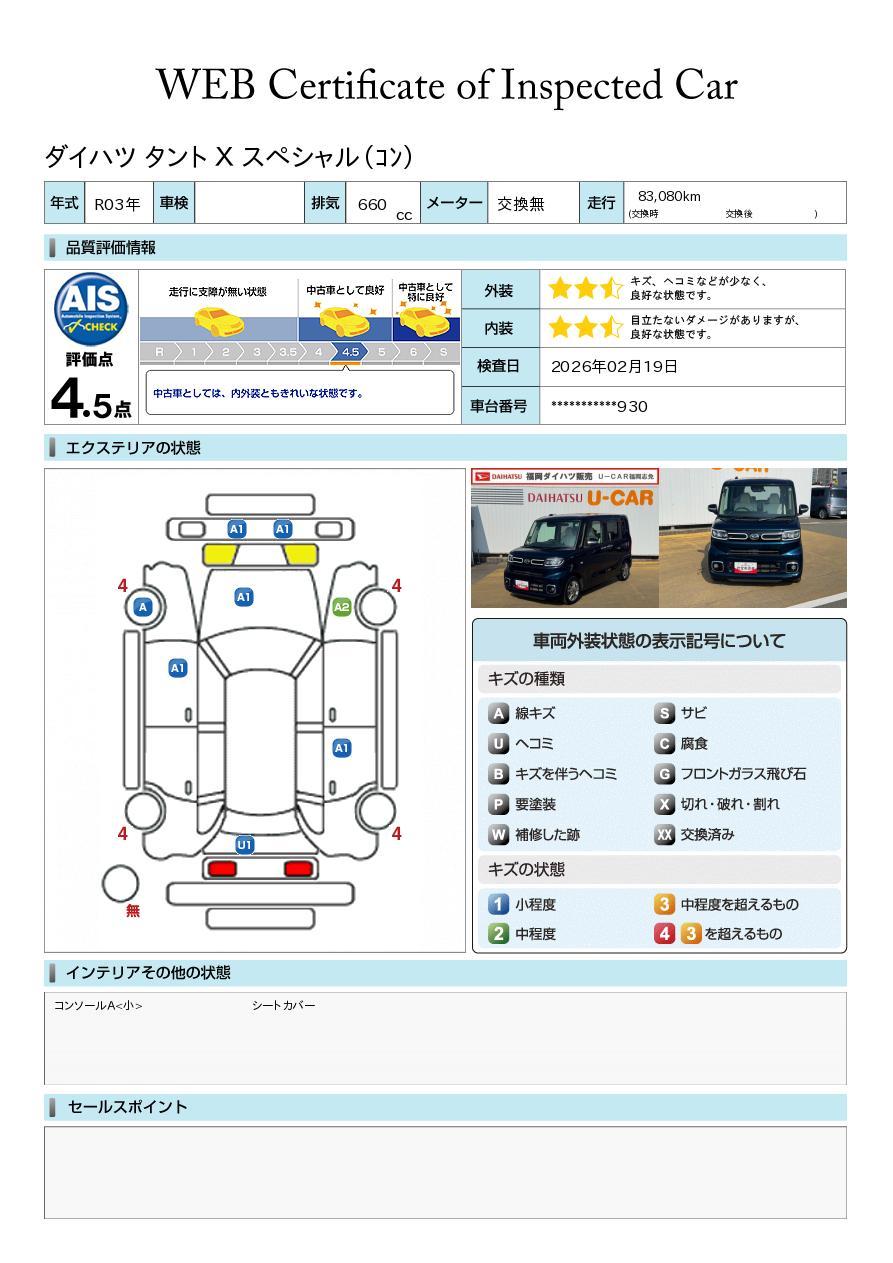 株式会社AISの車両状態証明書となります。