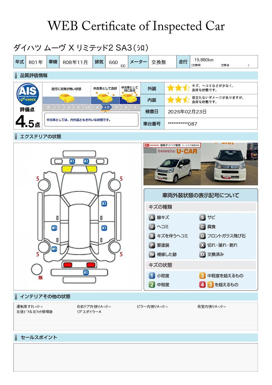 中古車をお選びいただく際に気になる走行距離や修復歴などに加えてキズ・凹みの有無・状態や消耗品の交換、今までの整備状況が “ダイハツ認定中古車カルテ”でわかります。