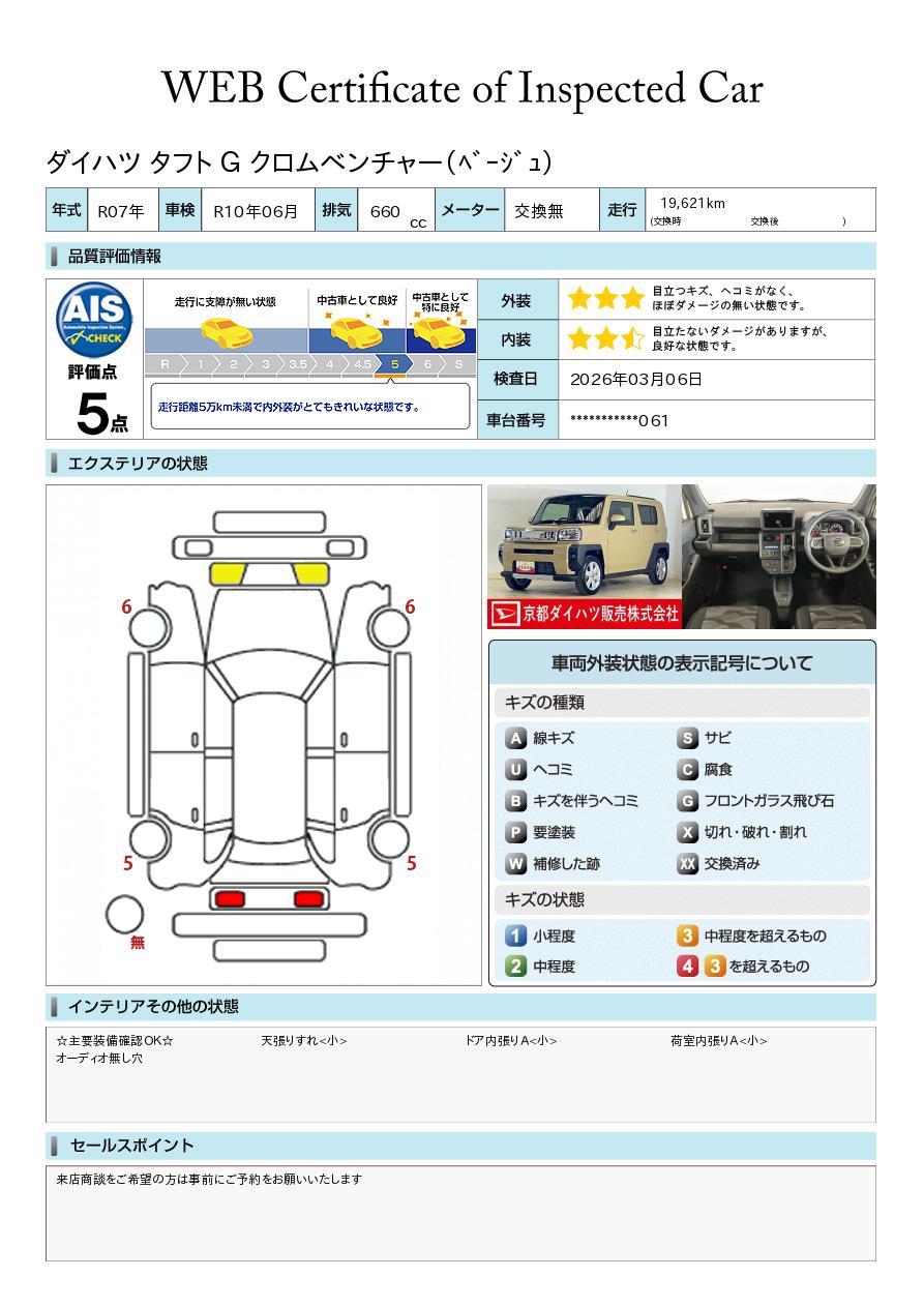 タフトG クロムベンチャー ワンオーナー バックカメラ USBワンオーナー バックカメラ スカイフィールトップ 前後コーナーセンサー 前席シートヒーター 電子パーキング オートマチックハイビーム オートブレーキホールド USBチャージャー LEDヘッドライト(京都府)の中古車