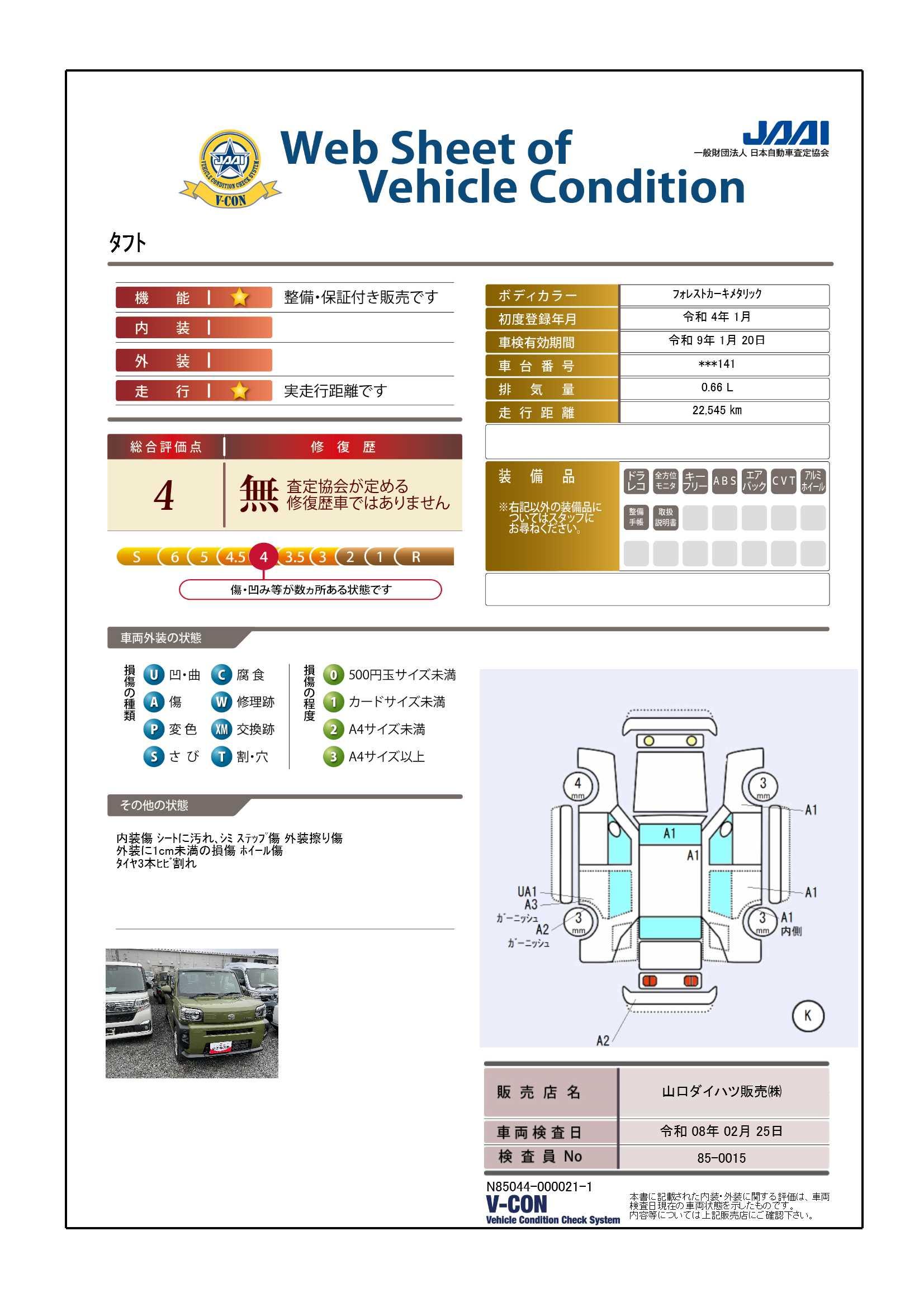 評価点及び上記コメントは、評価日時での車両状態を示したものです。