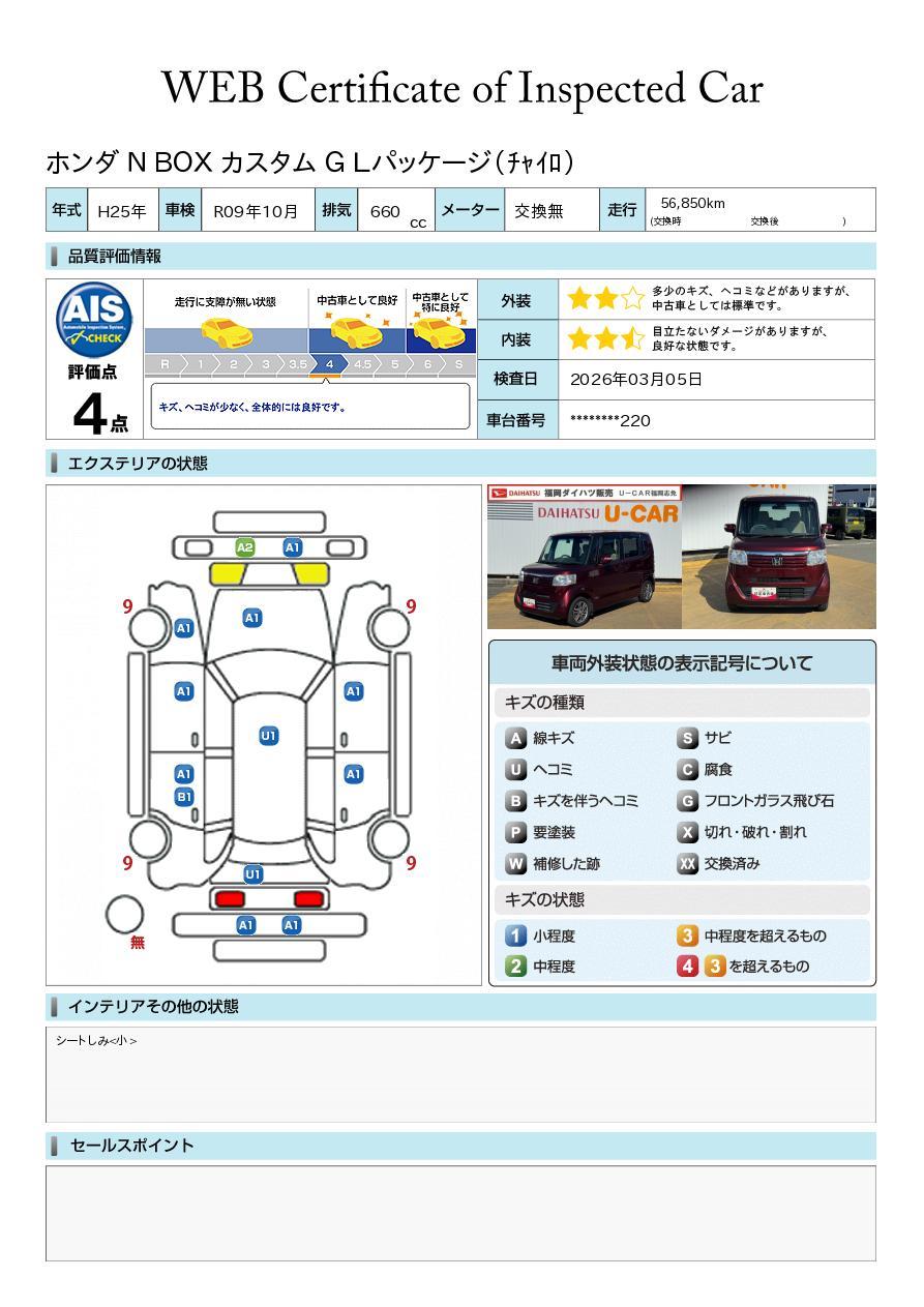 株式会社AISの車両状態証明書となります。