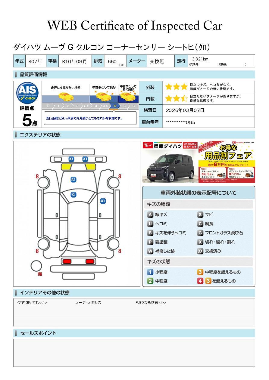 評価点及び上記コメントは、評価日時での車両状態を示したものです。