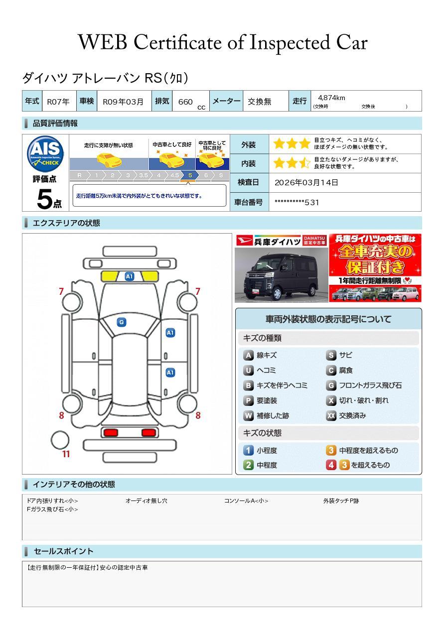 株式会社AISの車両状態証明書となります。
