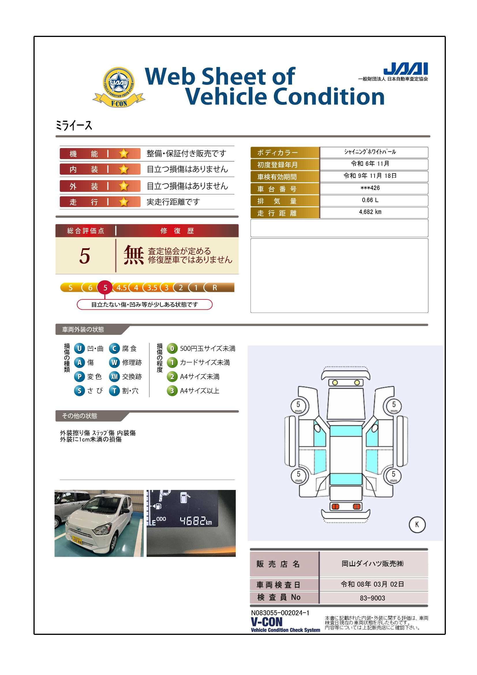 現状の車両の状態に関しましては必ず販売店に確認をお願いします。(2008年10月からの評価基準改定により、一部の車両につき店頭の評価表記と違う場合がございます。詳しくは販売店にお問い合わせください。