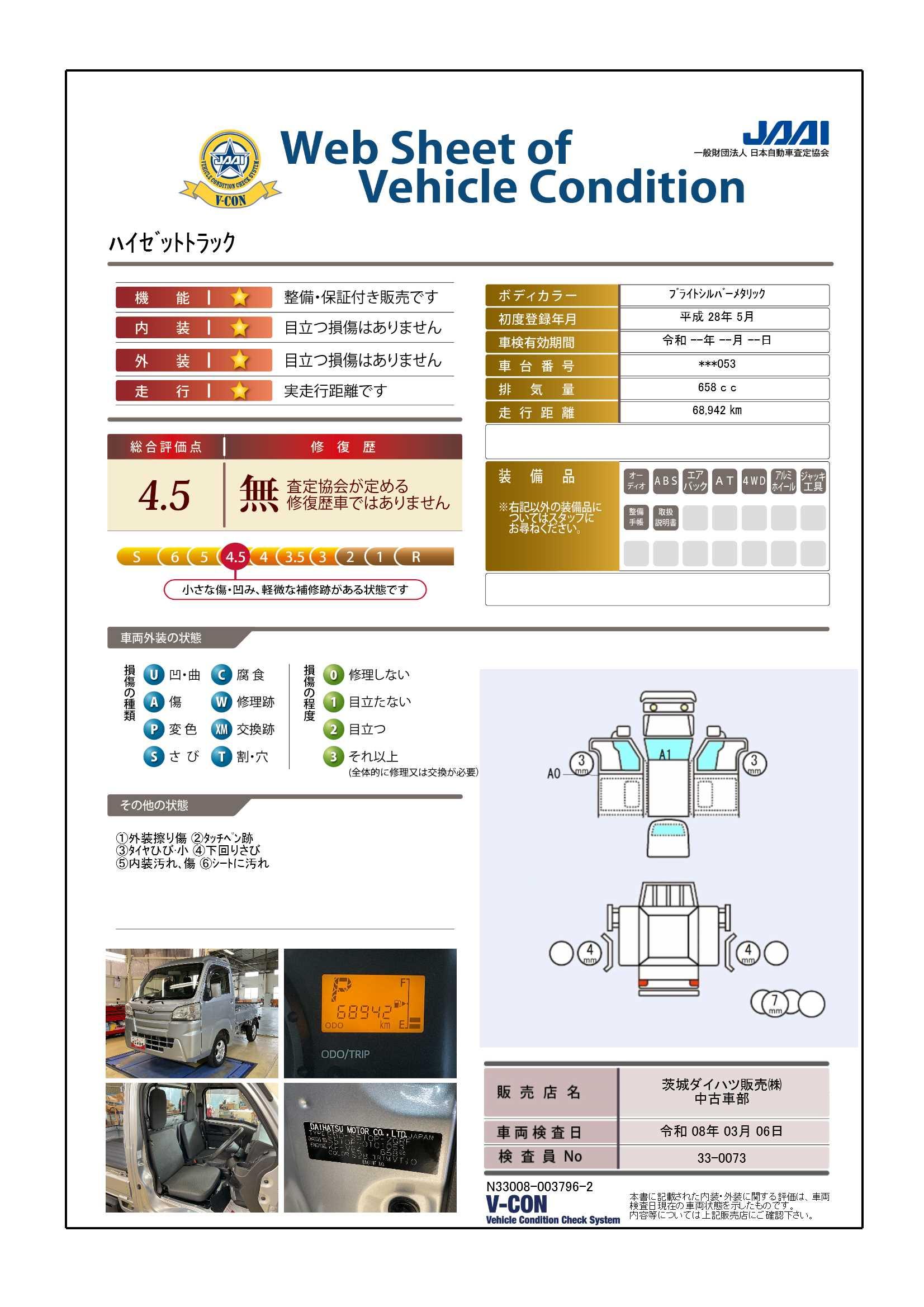 現状の車両の状態に関しましては必ず販売店に確認をお願いします。(2008年10月からの評価基準改定により、一部の車両につき店頭の評価表記と違う場合がございます。詳しくは販売店にお問い合わせください。