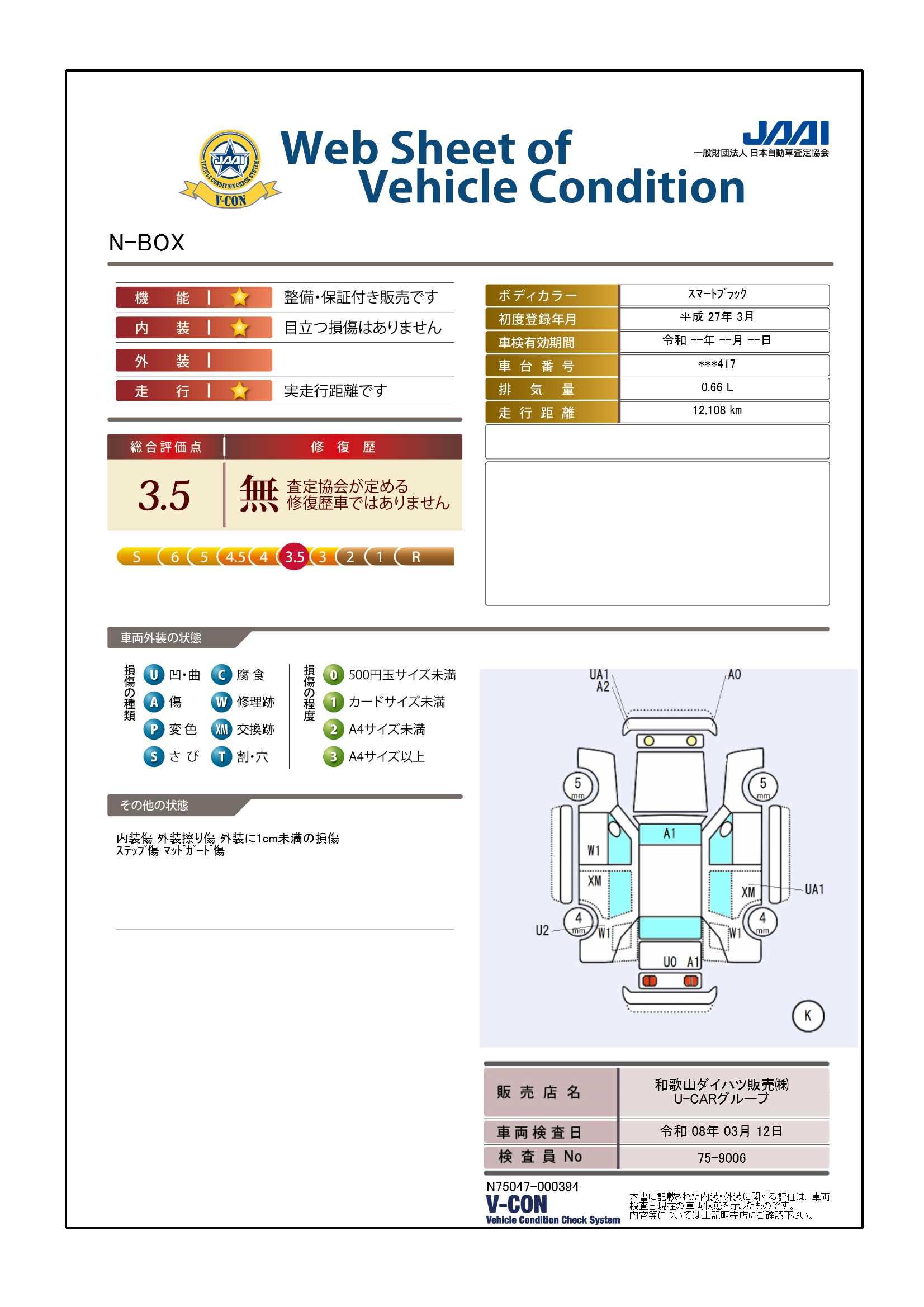 一般財団法人 日本自動車査定協会の車両状態証明書となります。