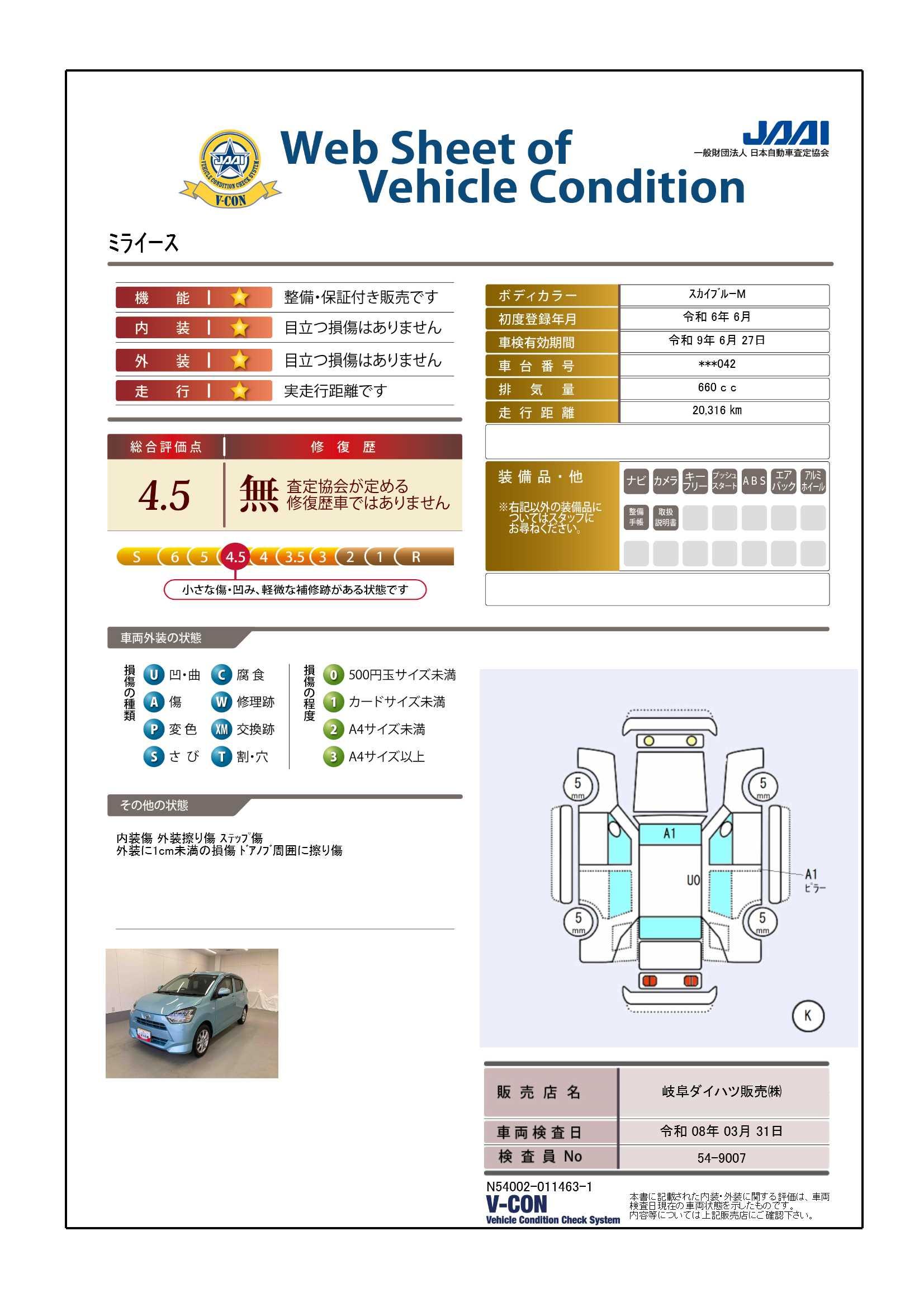 現状の車両の状態に関しましては必ず販売店に確認をお願いします。(2008年10月からの評価基準改定により、一部の車両につき店頭の評価表記と違う場合がございます。詳しくは販売店にお問い合わせください。
