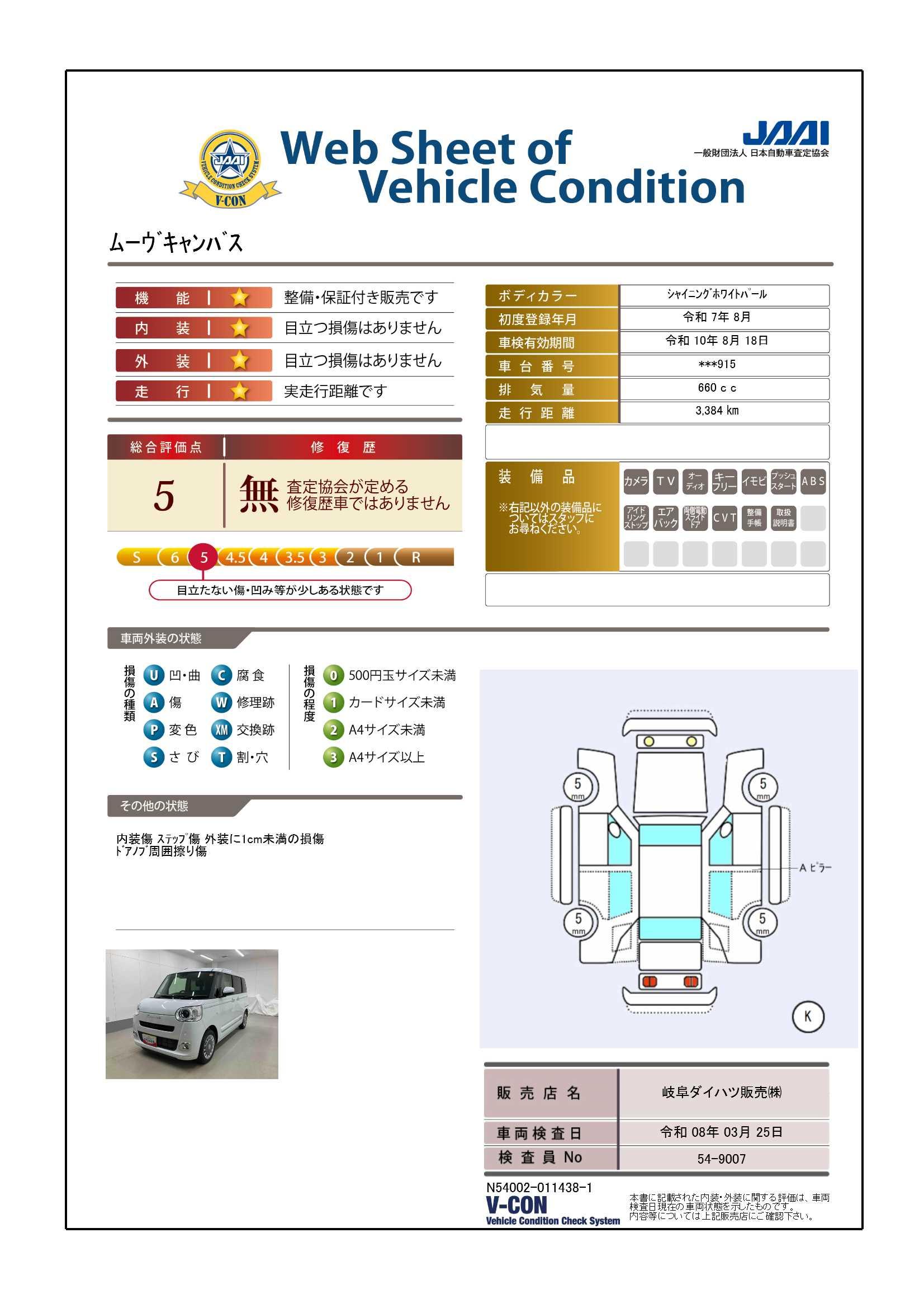 現状の車両の状態に関しましては必ず販売店に確認をお願いします。(2008年10月からの評価基準改定により、一部の車両につき店頭の評価表記と違う場合がございます。詳しくは販売店にお問い合わせください。