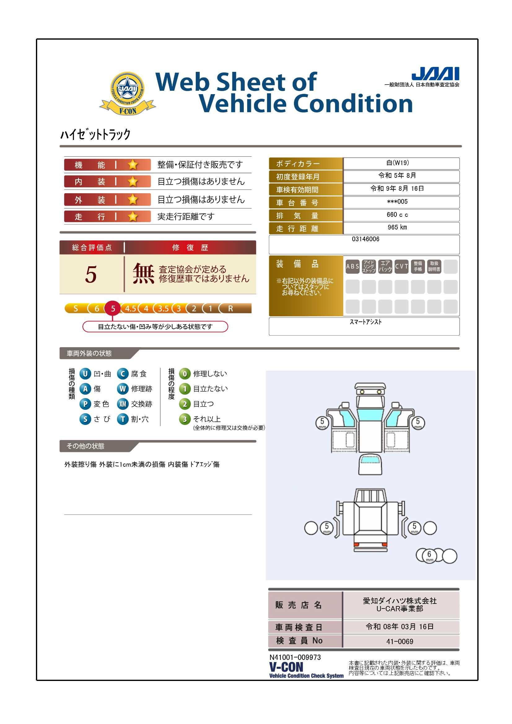 現状の車両の状態に関しましては必ず販売店に確認をお願いします。(2008年10月からの評価基準改定により、一部の車両につき店頭の評価表記と違う場合がございます。詳しくは販売店にお問い合わせください。