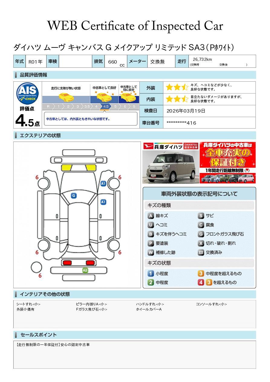 【第三者機関の車両品質評価書付き】車の状態が詳しくわかる車両状態証明書が付いておりますので、安心してお選びいただけます!詳しくはスタッフまでお気軽にお問合せください☆