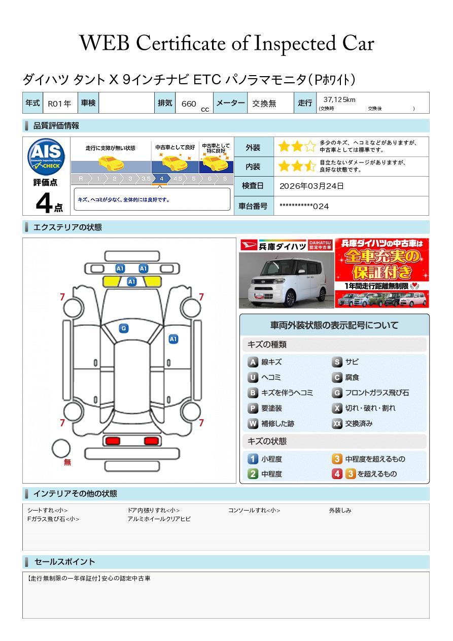 車両状態証明書が付いておりますので、安心してお選び出来ます。詳しくは、スタッフまでお気軽にお問合せください。