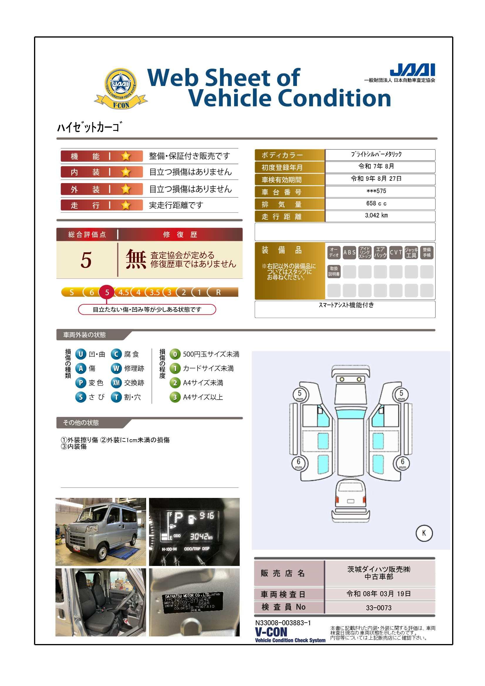 安心3【状態】車両状態証明書でキズや修復歴の有無を確認できます!気になる点は事前にご説明いたします♪