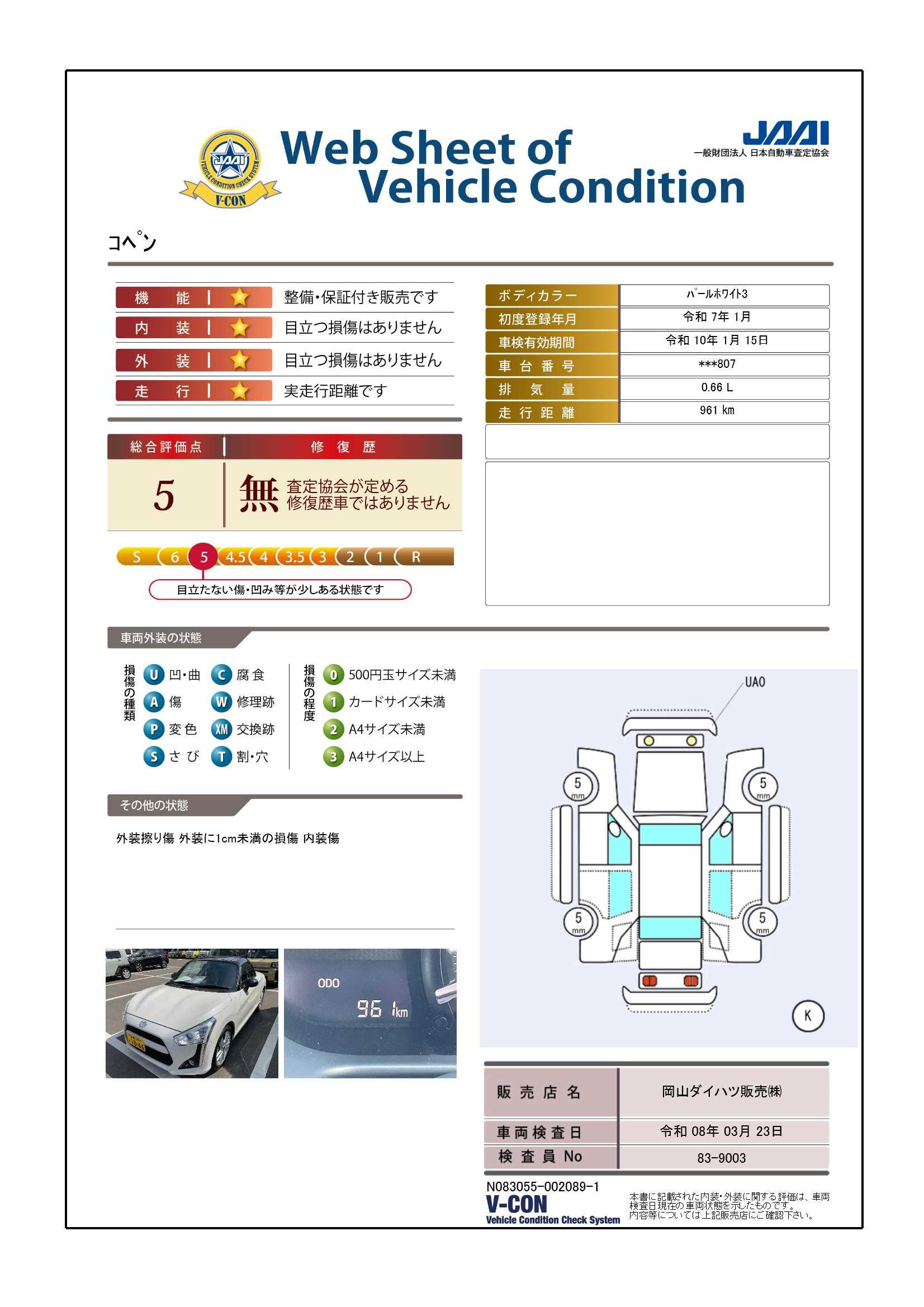 ダイハツ認定中古車は、「車両状態証明書」「約60項目の徹底点検・整備」「内装の徹底清掃と洗浄」「1年間無償保証(車両本体価格30万円以下の車両は3ヶ月または3000kmの保証)」が全車に付いています。