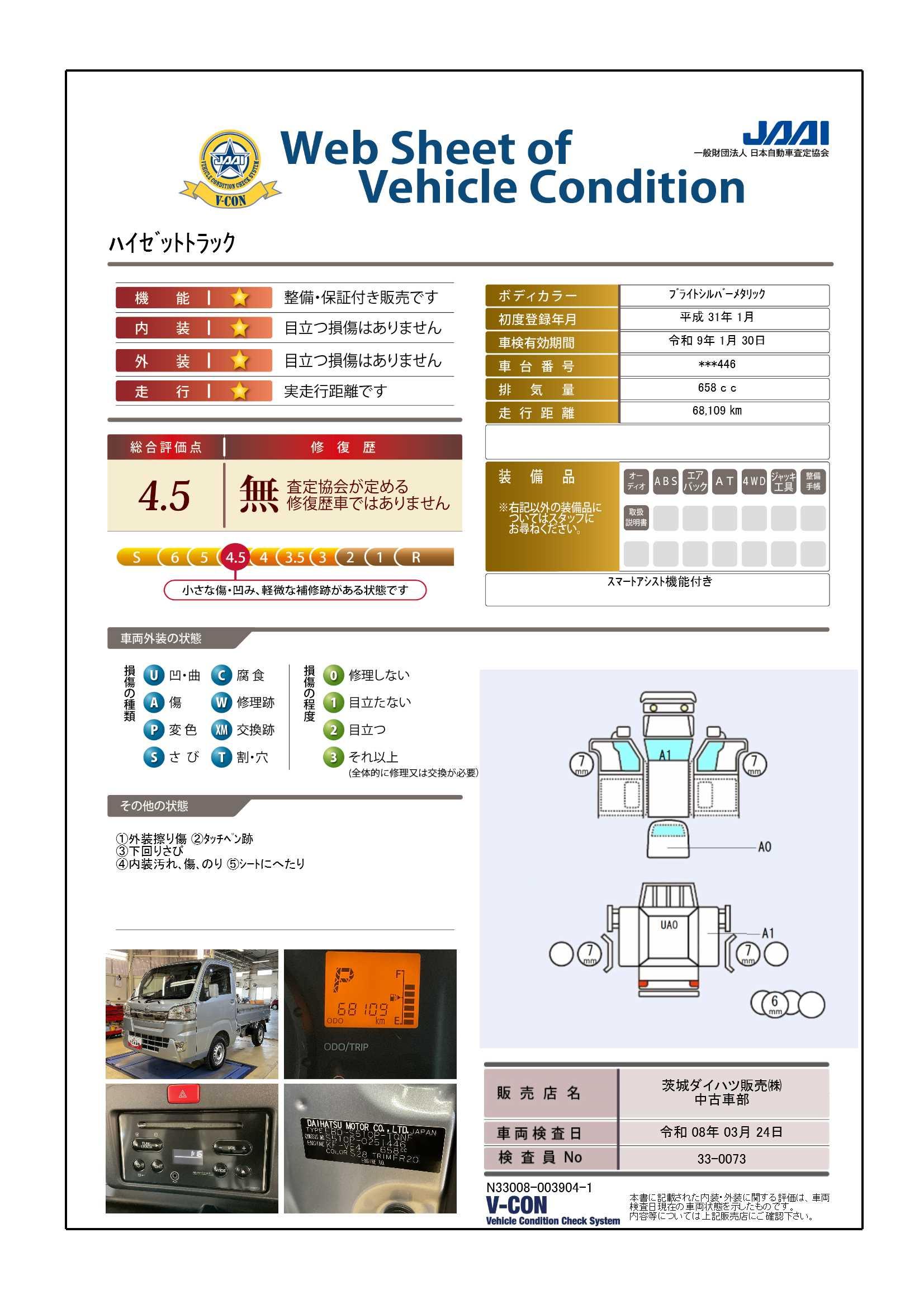 | 定期点検整備コメント | 定期点検整備:付、定期点検整備料金:車両価格に含む | ||