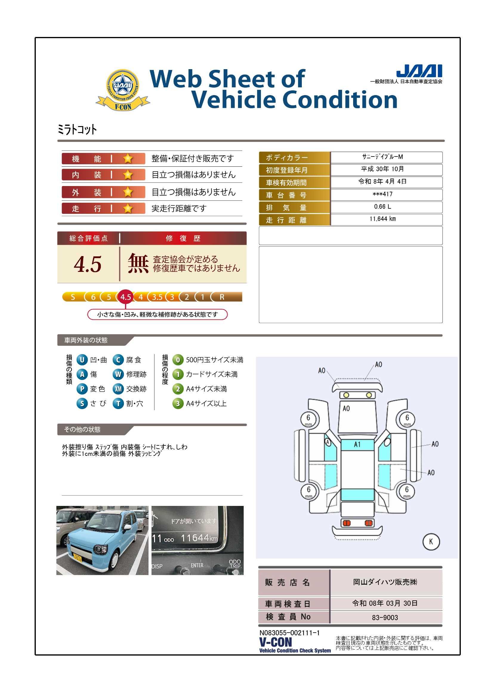 評価点及び上記コメントは、評価日時での車両状態を示したものです。