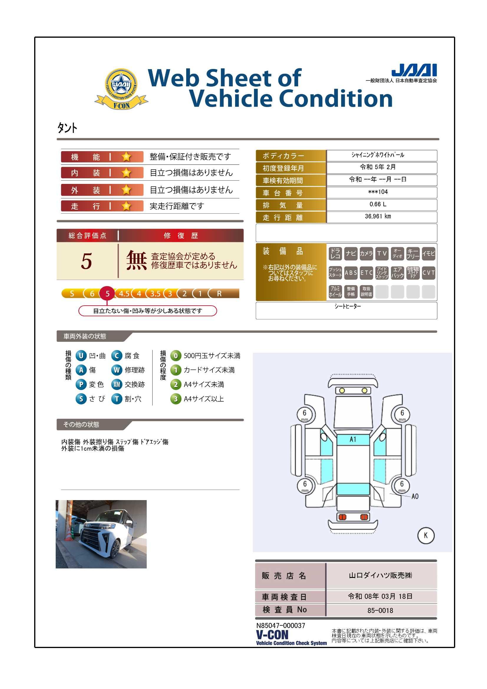 | 定期点検整備コメント | 定期点検整備:付、定期点検整備料金:車両価格に含む | ||