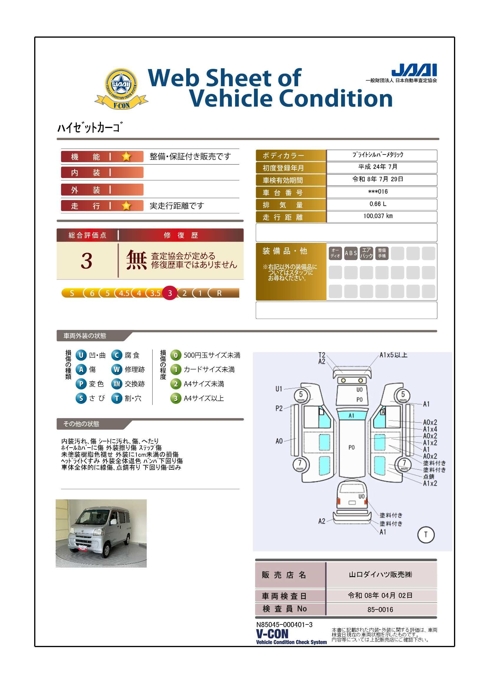 車両状態証明書付き