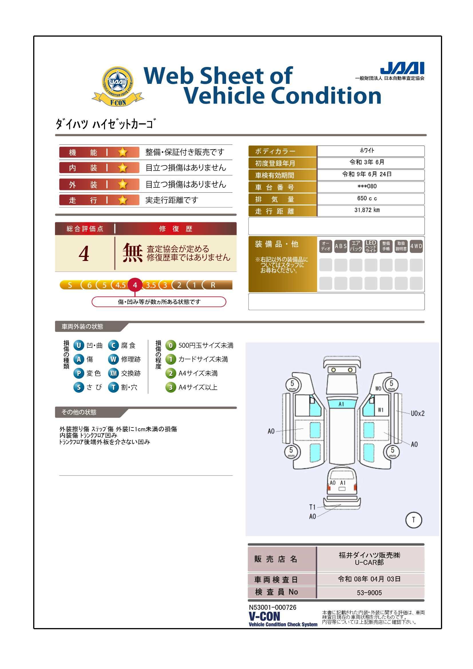 車両状態証明書付き