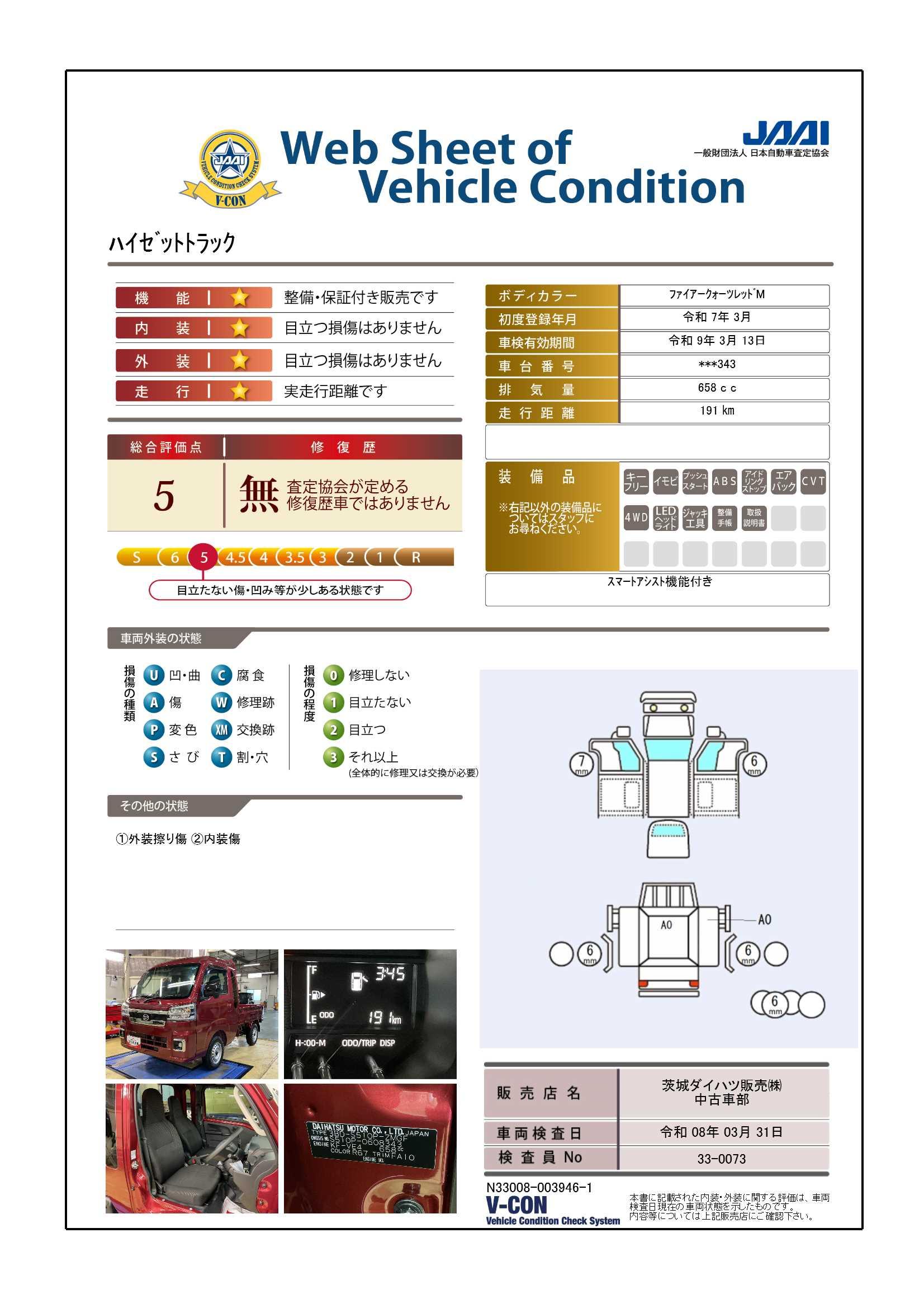 | 定期点検整備コメント | 定期点検整備:付、定期点検整備料金:車両価格に含む | ||