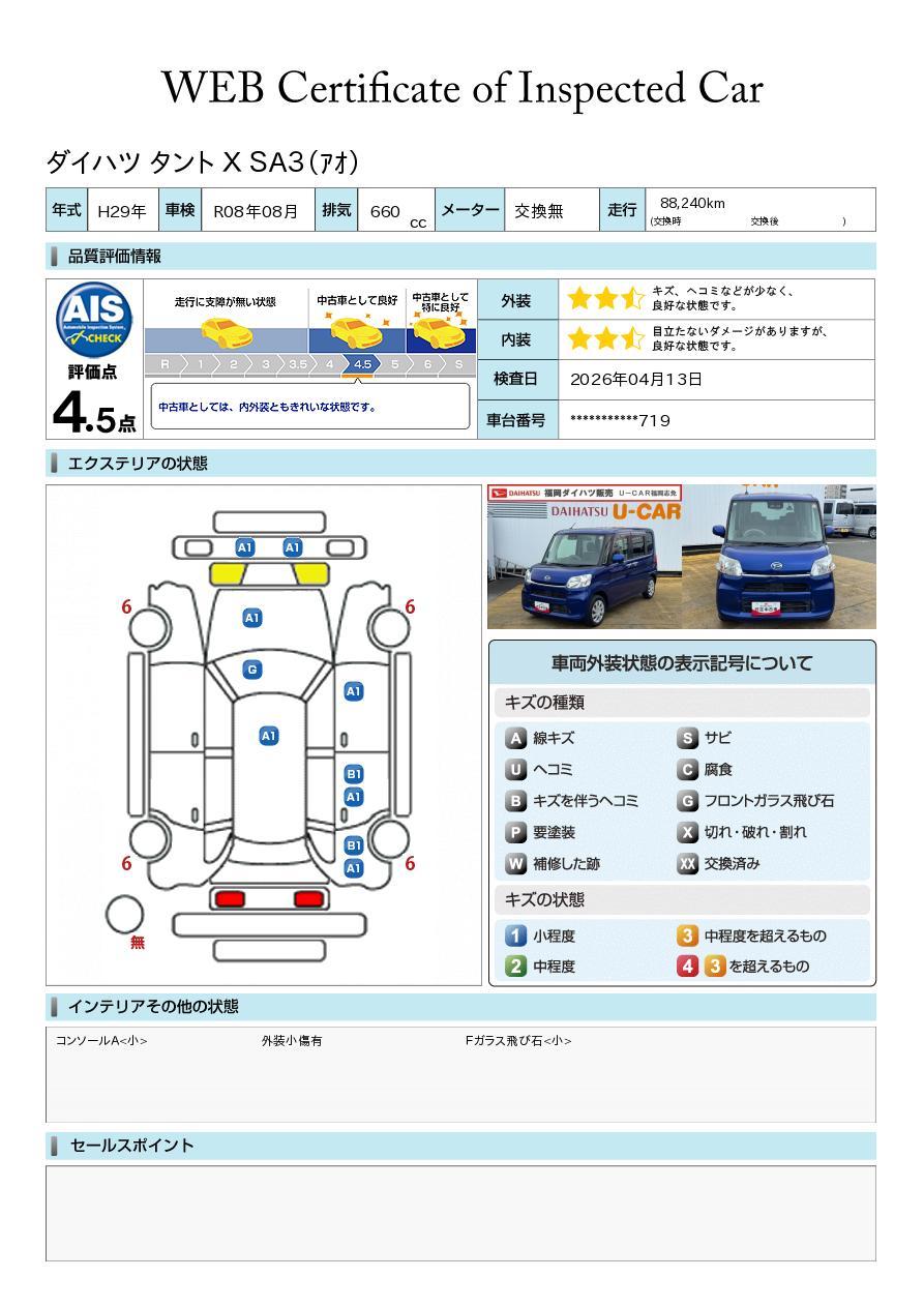 ダイハツ認定中古車なら展示車両の状態を開示しております。展示車両に自信があるからこそ出来るサービスです。