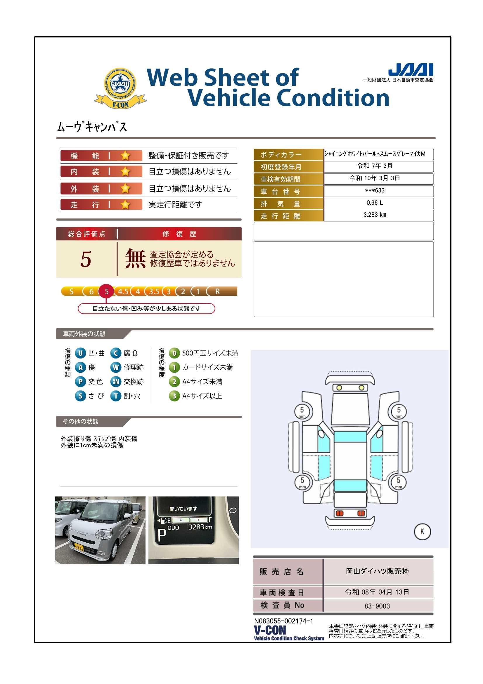 現状の車両の状態に関しましては必ず販売店に確認をお願いします。(2008年10月からの評価基準改定により、一部の車両につき店頭の評価表記と違う場合がございます。詳しくは販売店にお問い合わせください。