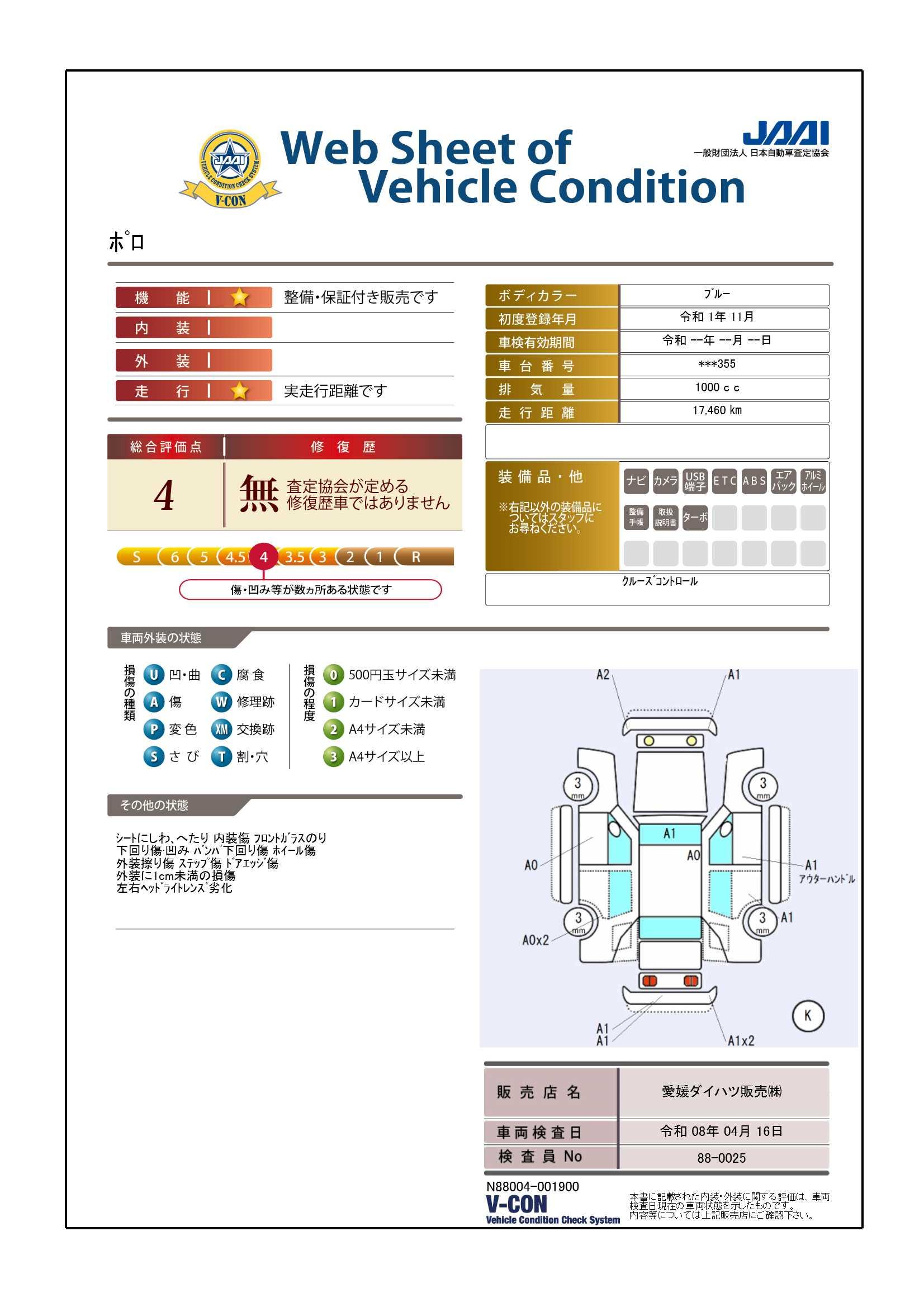 評価点及び上記コメントは、評価日時での車両状態を示したものです。