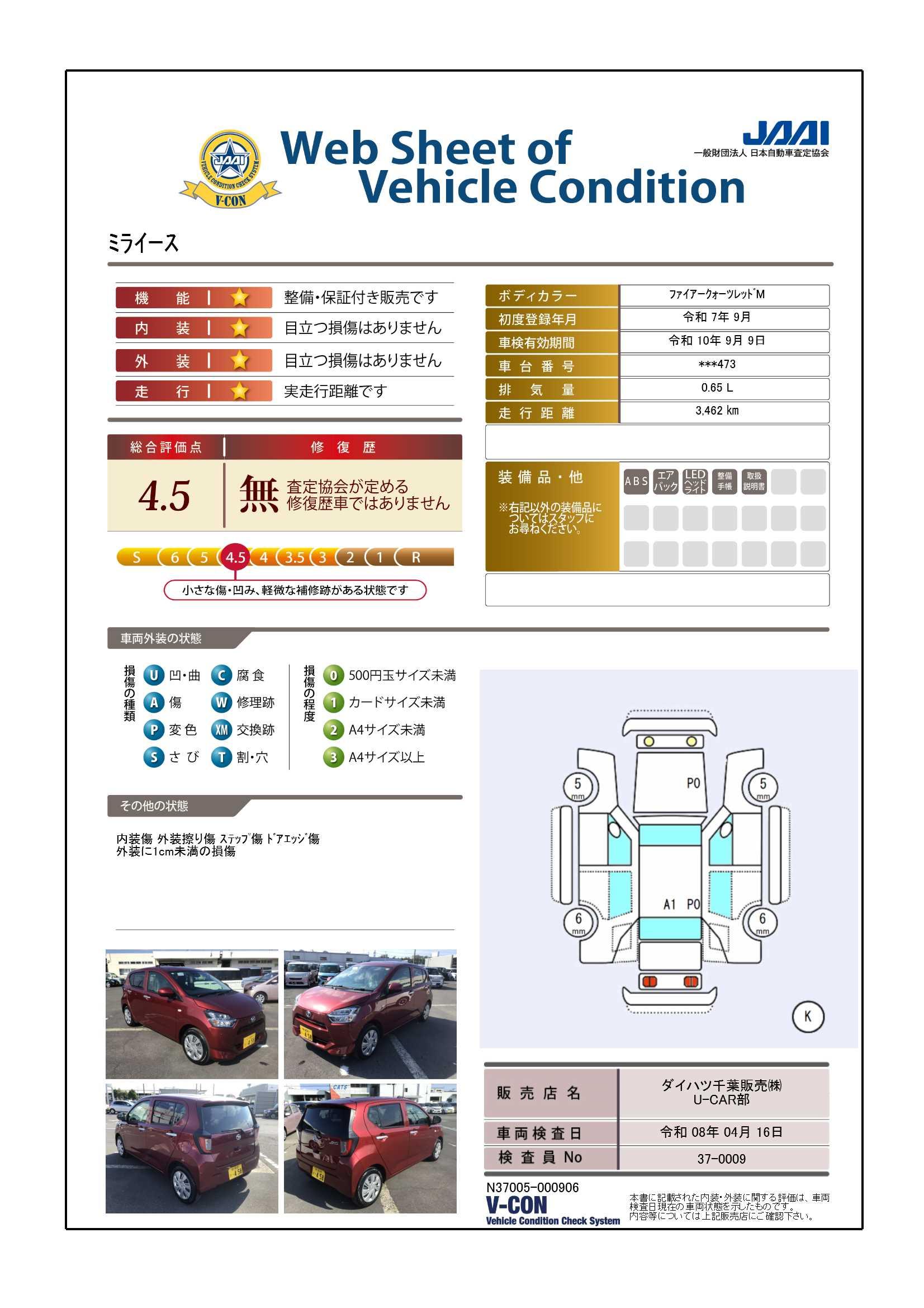 点検整備時期を迎えておりませんので、該当がございません。 |